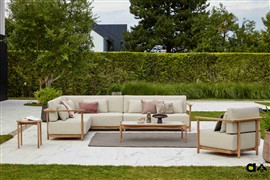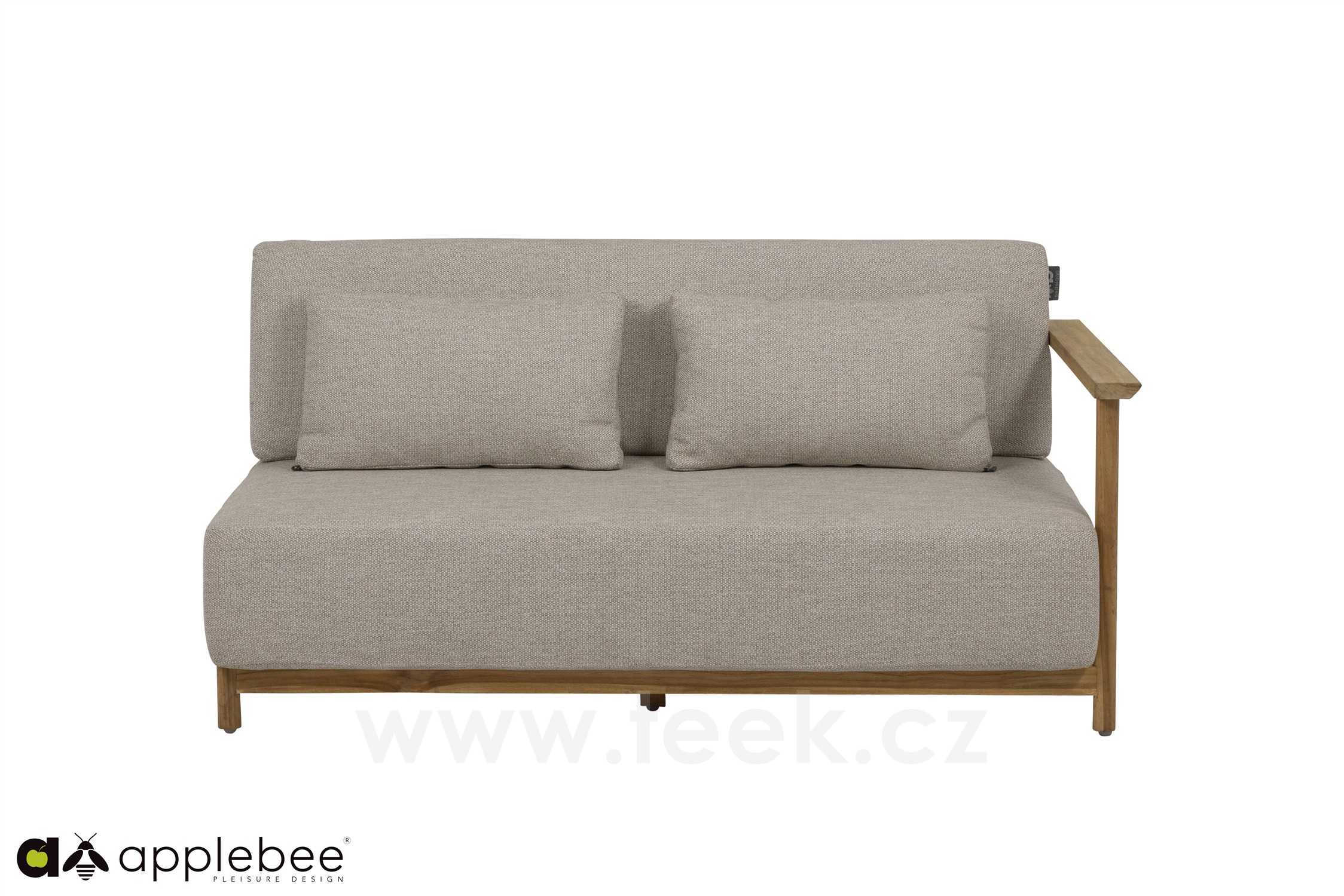 2-Seater Left End Piece St. Lucia, Apple Bee, 158x82x61 cm, frame teak natural, cushions outdoor fabric Olefin Natural Oak