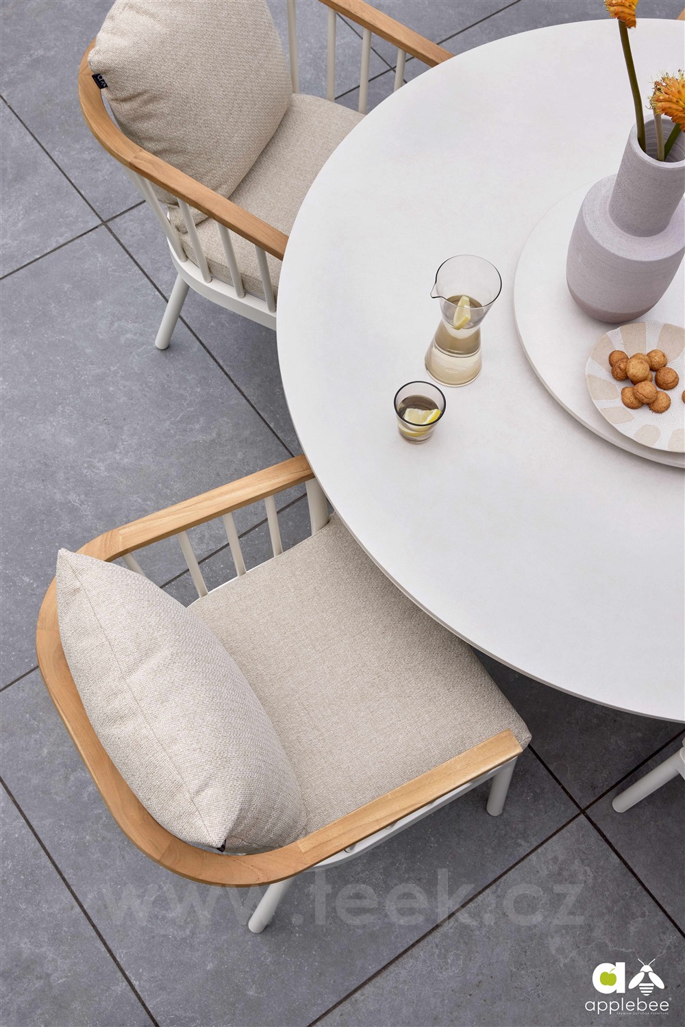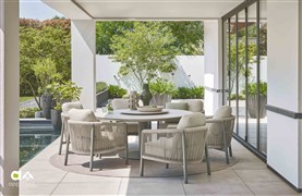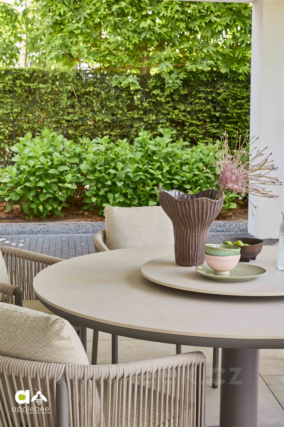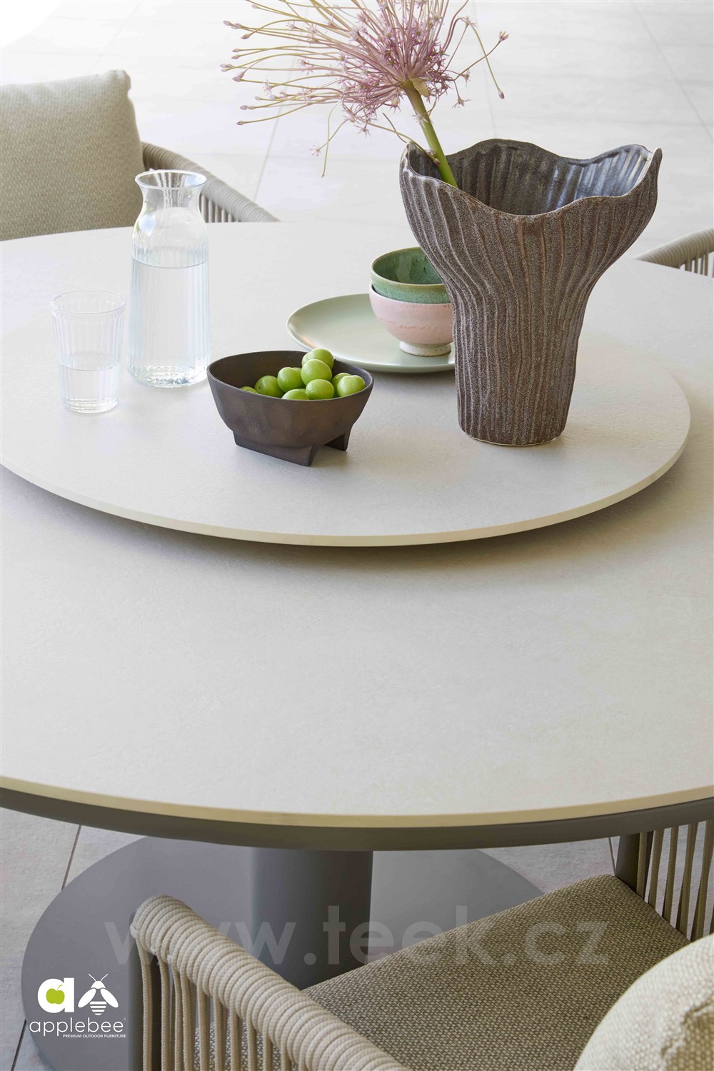 Kulaté a oválné venkovní jídelní stoly Melville s klasickou i sníženou výškou od Apple Bee.