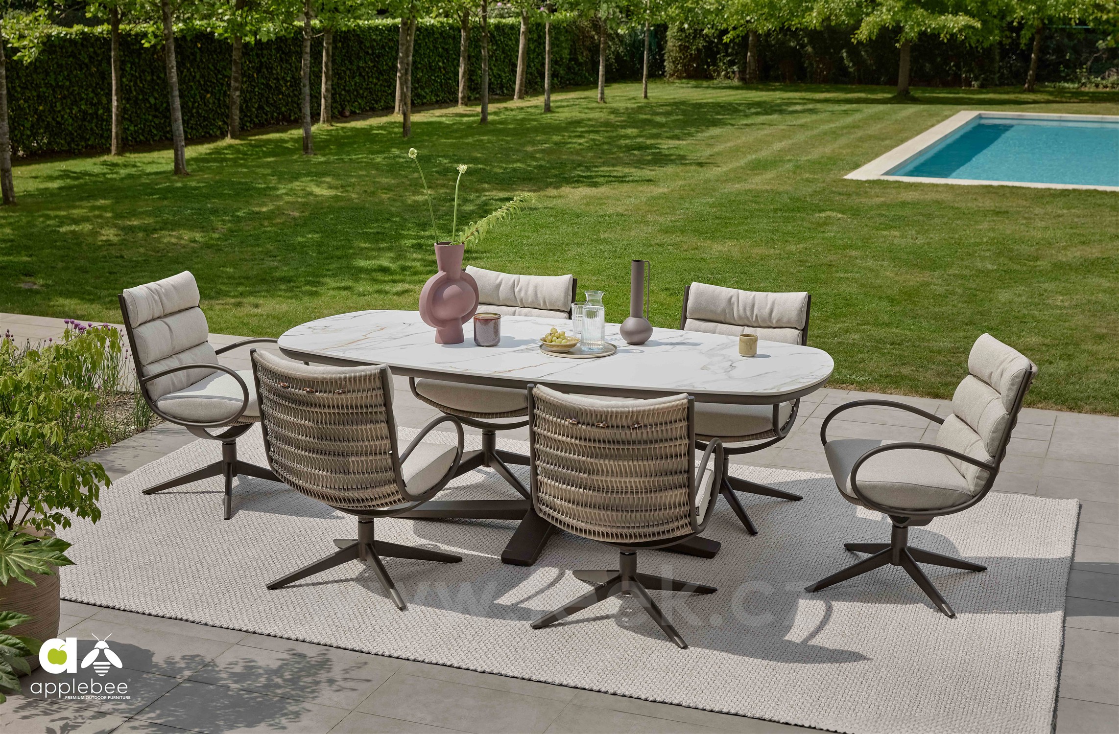 Venkovní oválné jídelní stoly Zanzibar od Apple Bee.