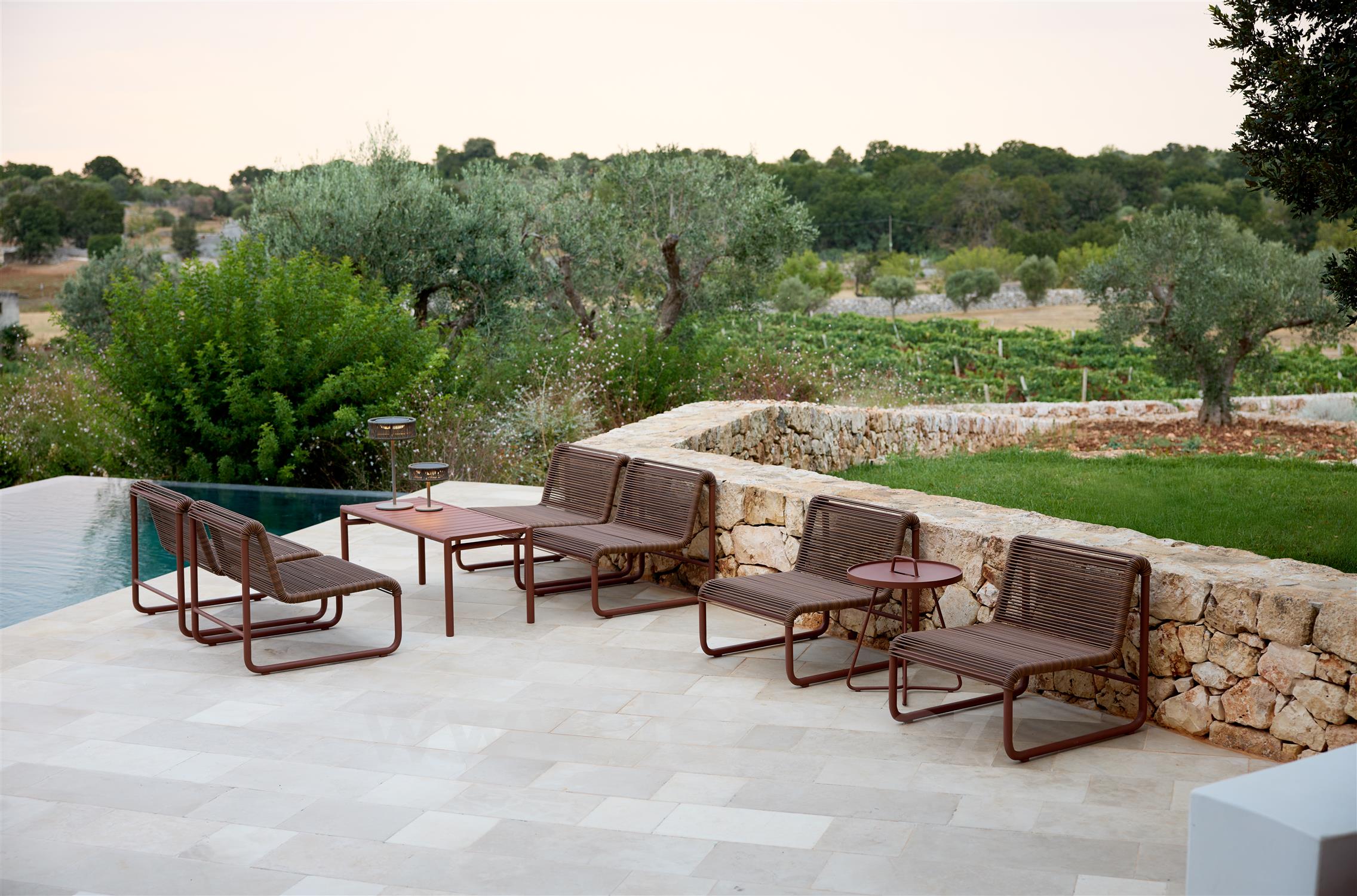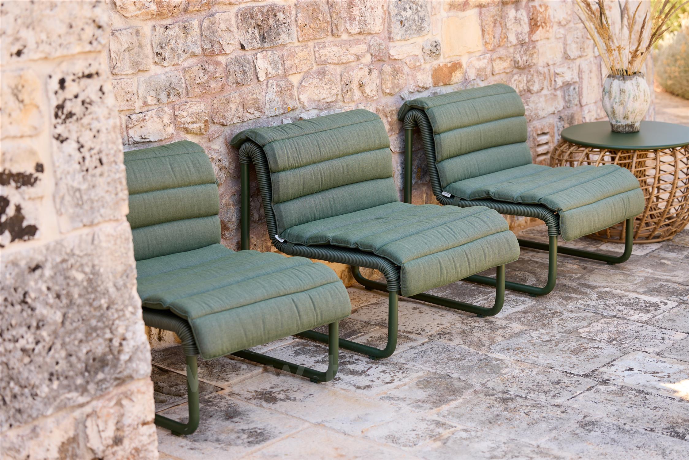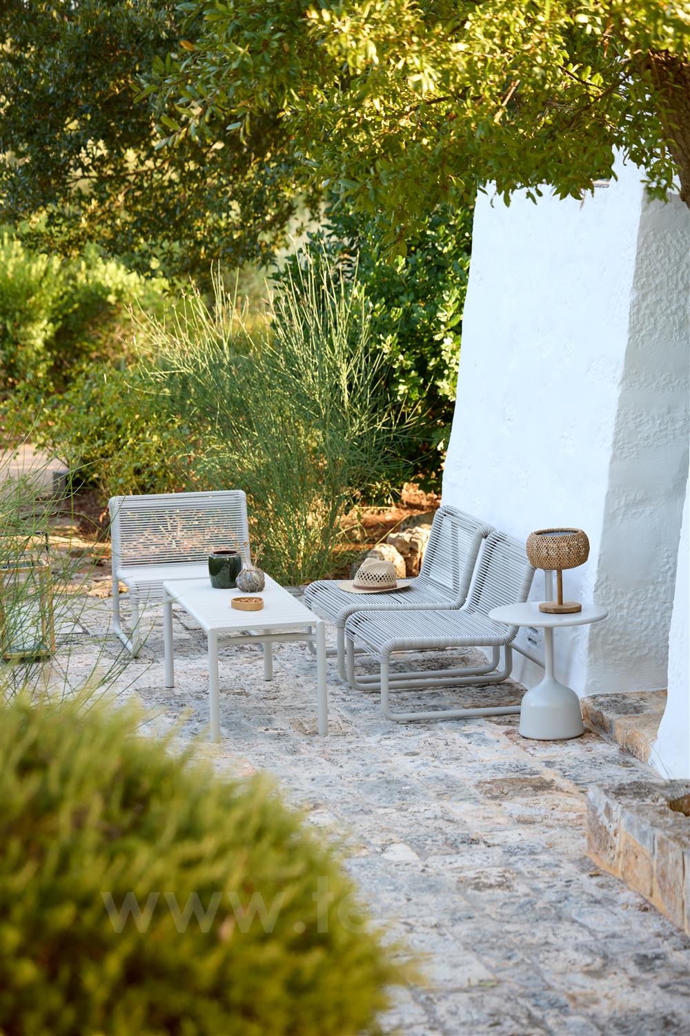 Kolekce Al Dente spojuje hravou lehkost s precizní konstrukcí. Elegantní lakový výplet dodává nábytku vzdušnost, strukturu a vizuální lehkost. Kontrast mezi lankovým výpletem a pevnou, práškově lakovanou hliníkovou konstrukcí vytváří harmonickou rovnováhu mezi lehkostí a stabilitou. Kolekce je navržena pro venkovní použití, nabízí vysoký komfort, dlouhou životnost a nadčasový design.