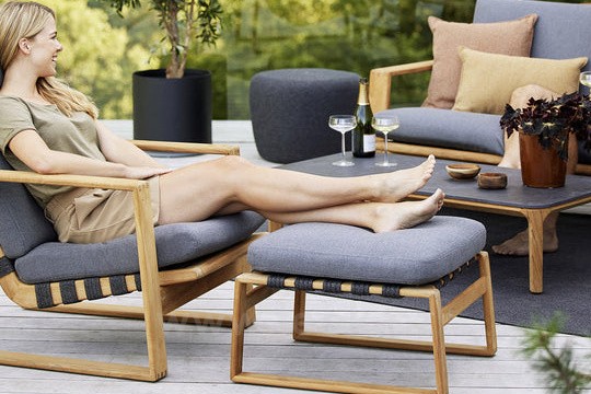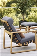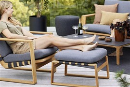 Kolekce lounge nábytku z teakového dřeva v kombinaci s lankovým výpletem.
