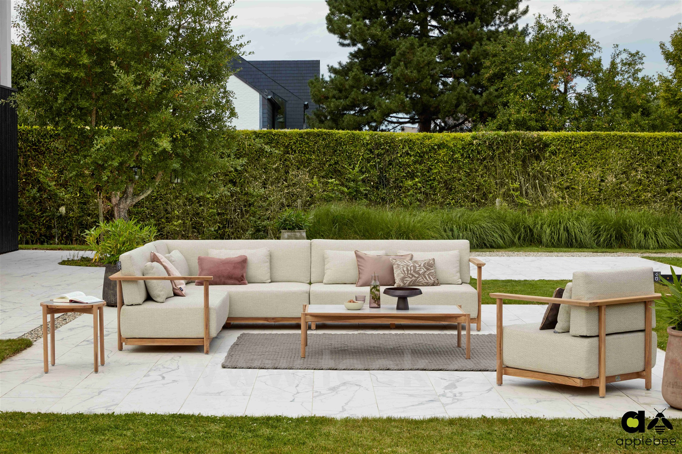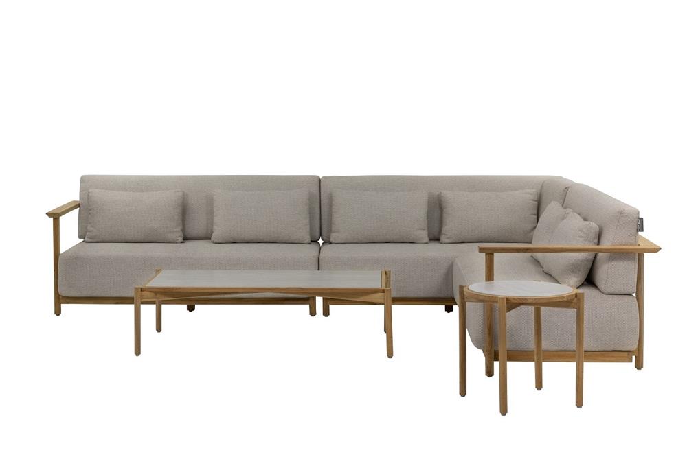 Modulární teaková venkovní sedací sestava.