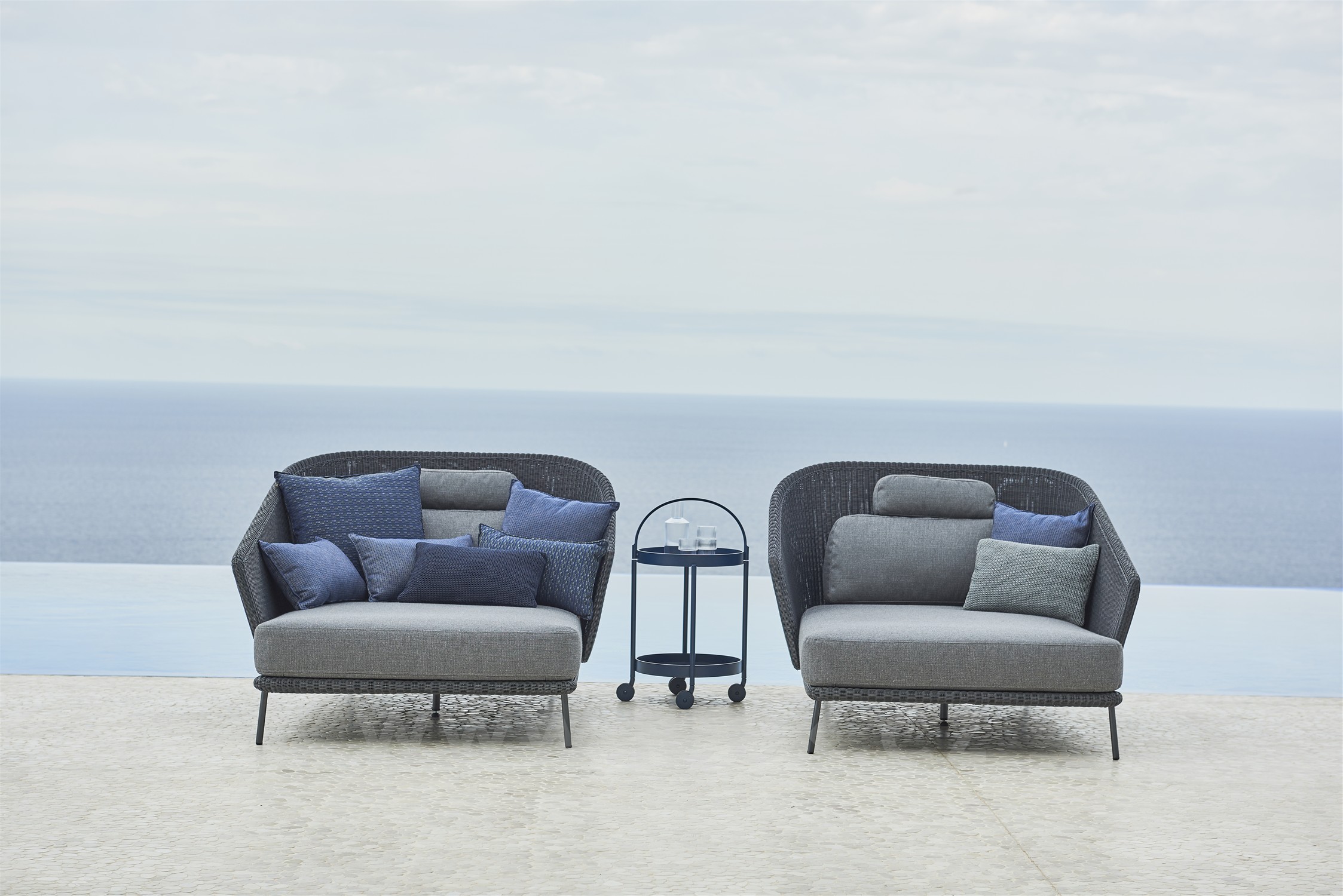Comfortable outdoor lounge furniture from Cane-line’s Mega collection. It can be paired with the