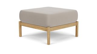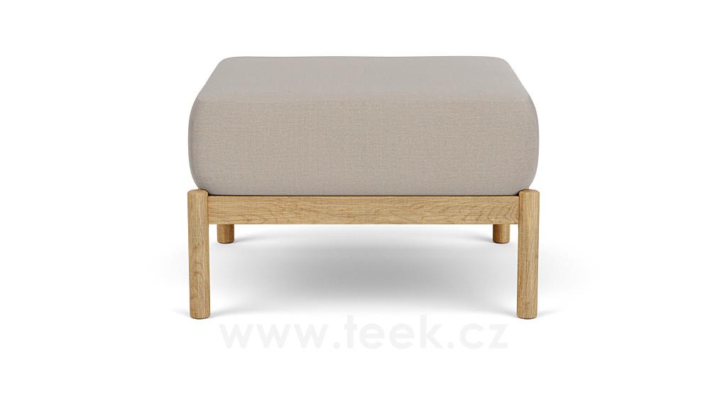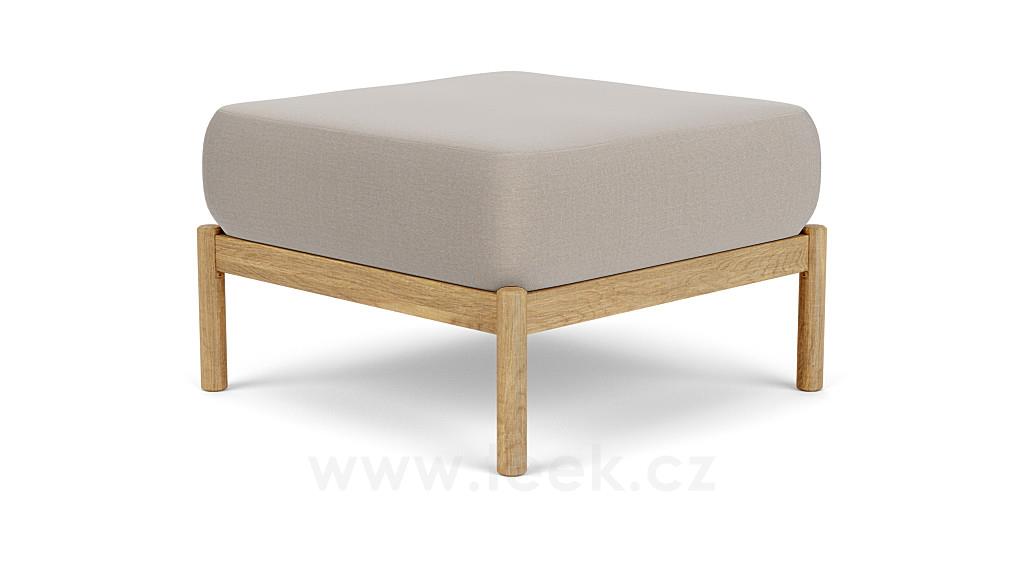 Cocoon footstool by Barlow Tyrie. The footstool has a teak frame and a seat made of outdoor Sunbrella acrylic fabric (colorfast, water-repellent, and easy to maintain). You can choose between two types of seat cushions – standard or waterproof cover, regular foam filling. The choice of color is according to a wide color chart.