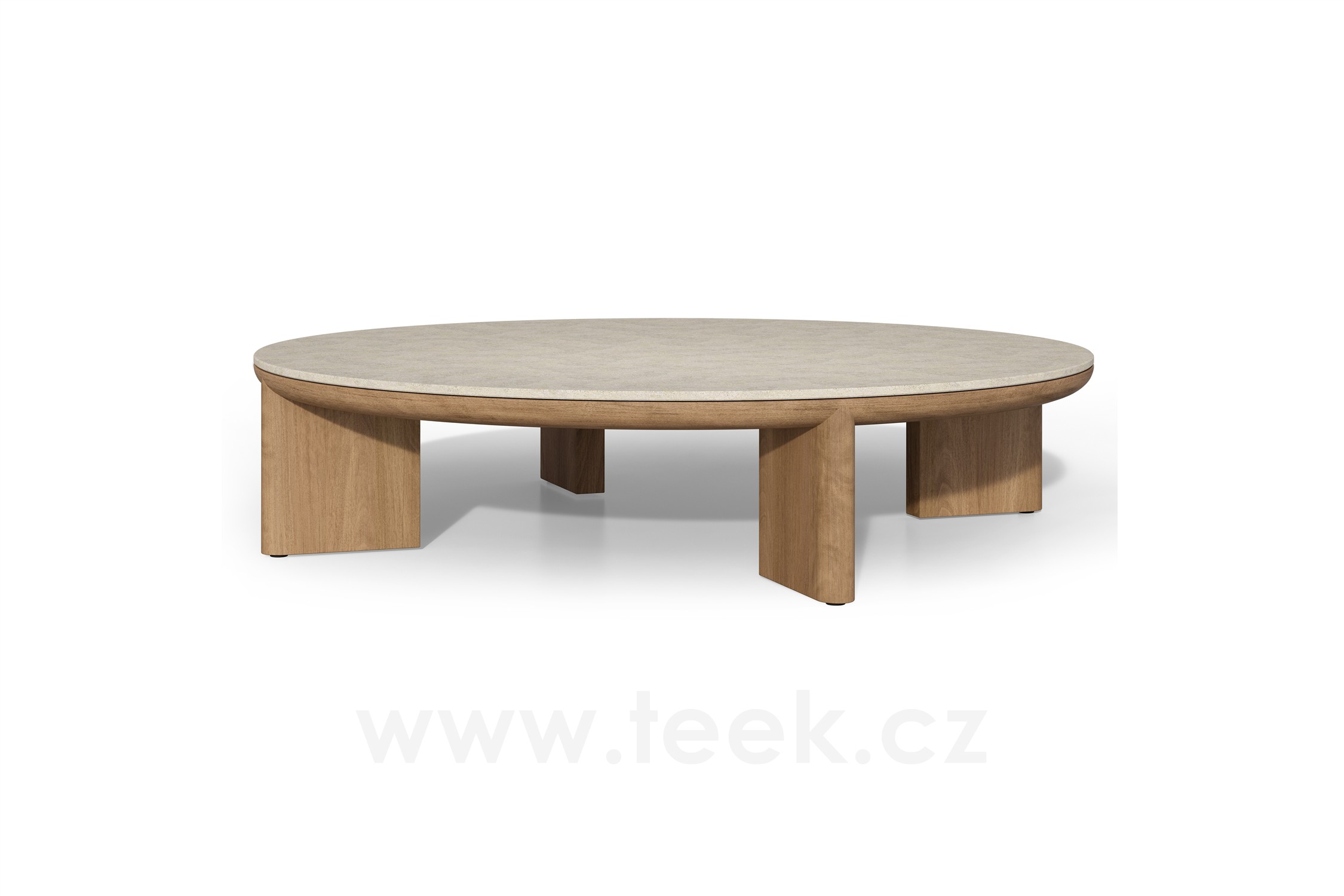 Konferenční stolek Amanu, Tribu, kulatý 90x28 cm, rám teak, deska keramika