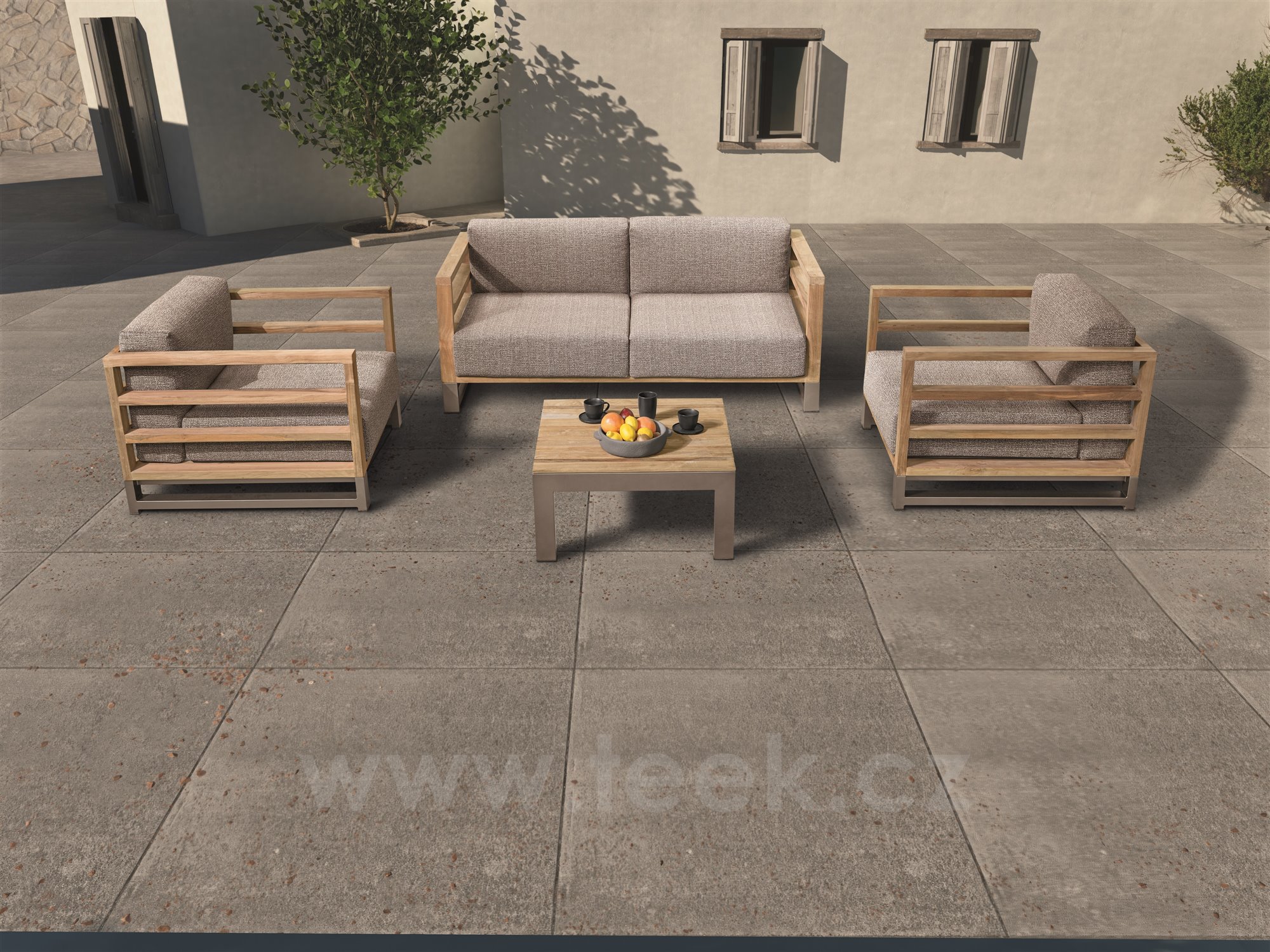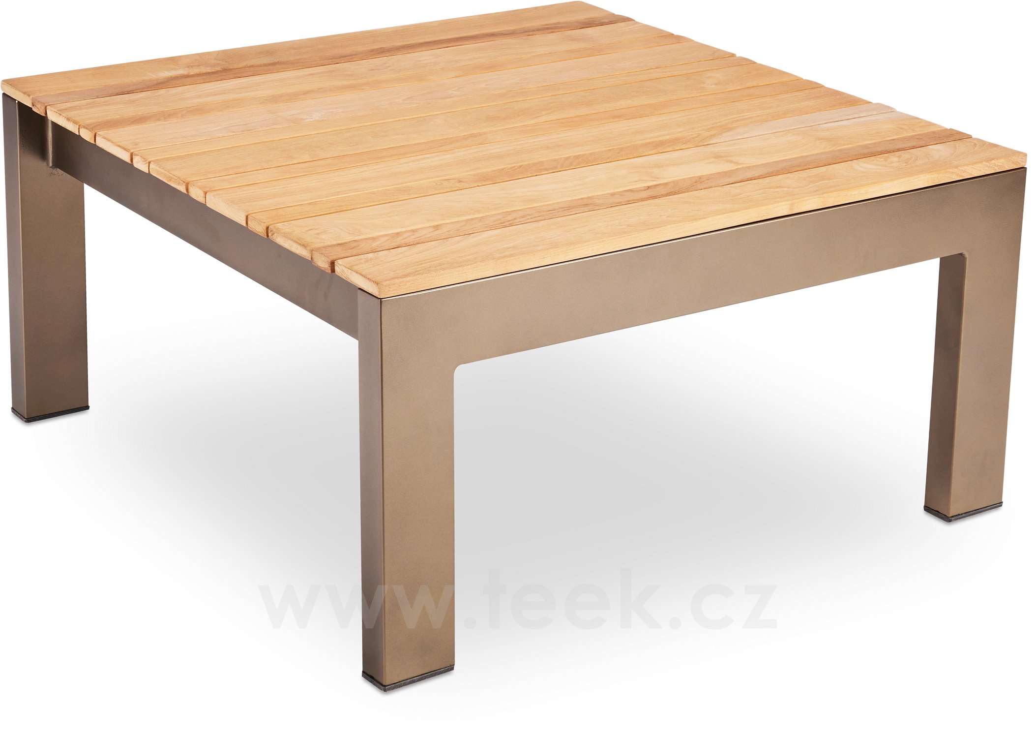 Couchtisch Luc, Stern, quadratisch 80x80x40 cm, Gestell lackiertes Aluminium sand matt, Platte Teak