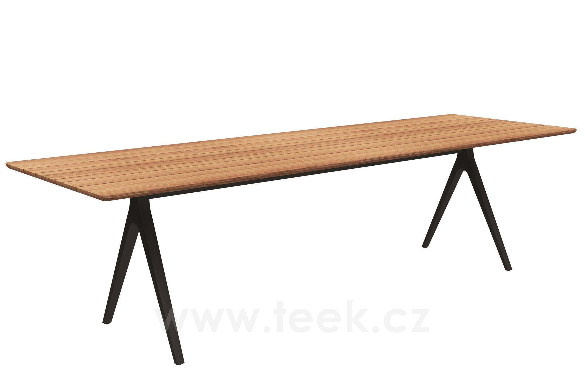 Esstisch Split, Gloster, rechteckig 280x92x74 cm, Aluminiumrahmen Meteor, Platte Teak