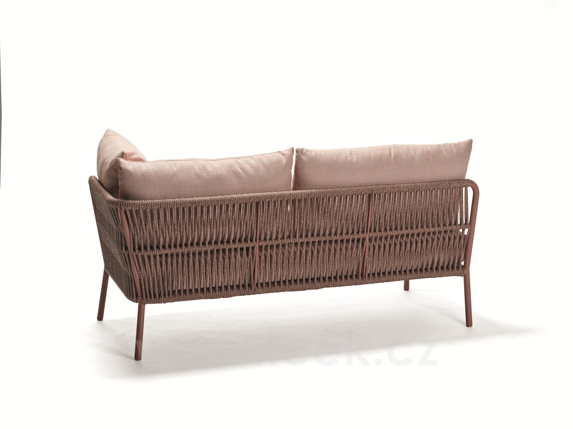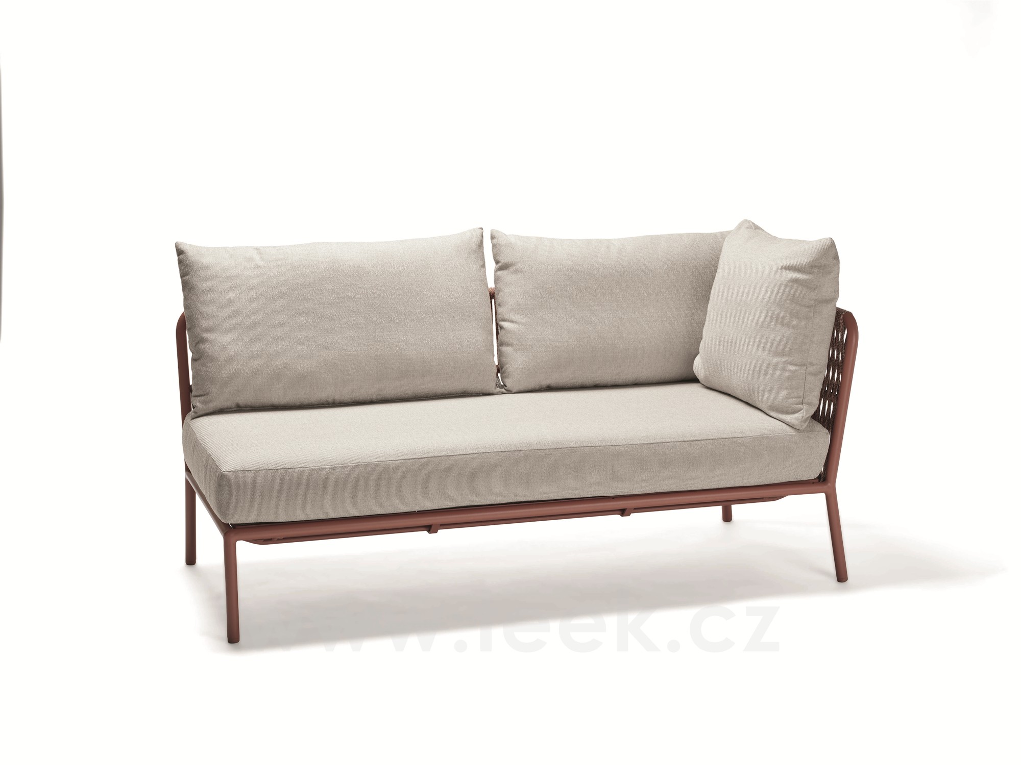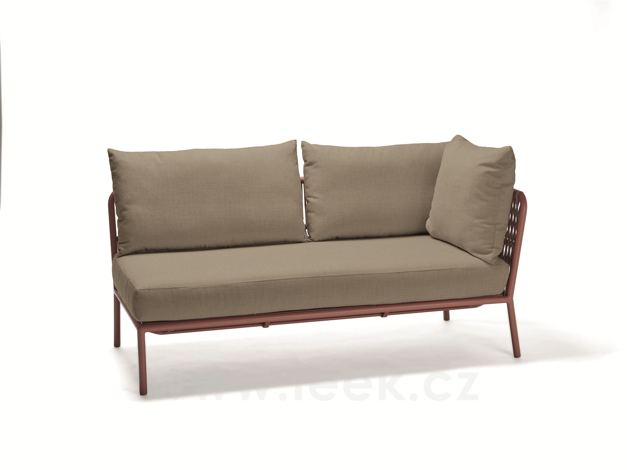 2-místný ukončovací díl levostranný Romy, Stern, 161x75x82 cm, rám lakovaný hliník Terra, lankový výplet Terra, sedáky venkovní látka Lychee