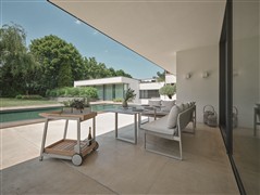 Venkovní modulární jídelní sestava a lavice.