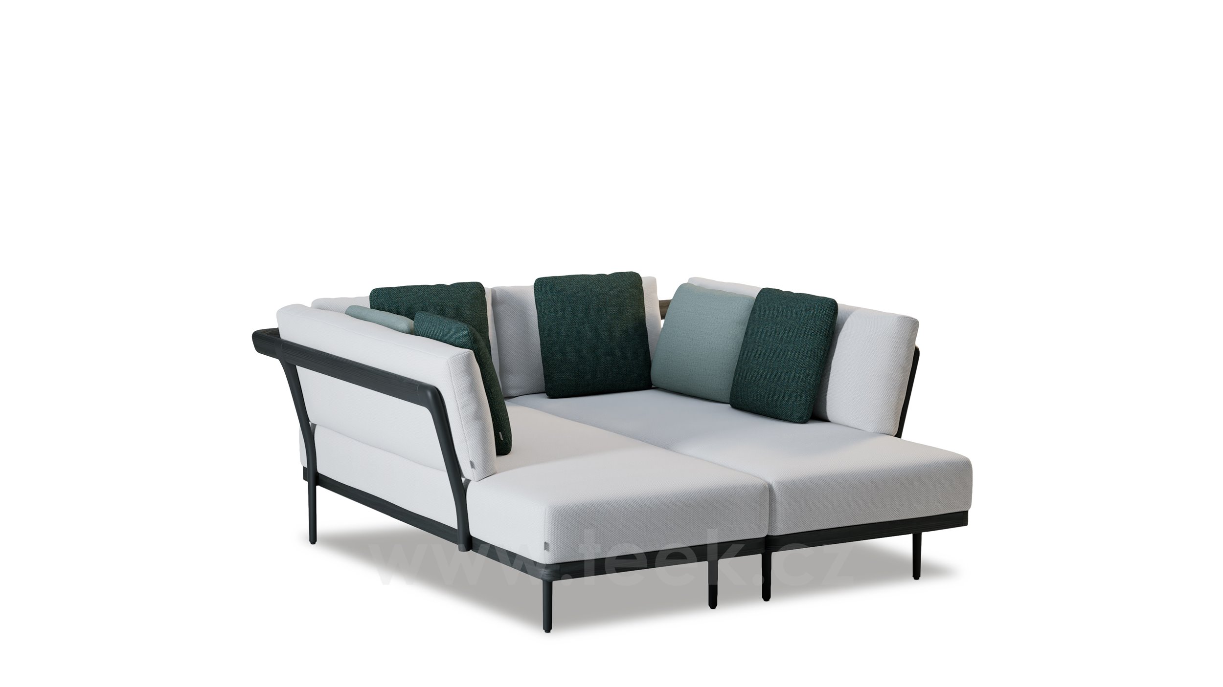 Denní postel Flows, Manutti, 166x176x73 cm, rám hliník šedočerný lava a teak scuro - mořený černý teak, rám bez sedáků