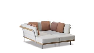 Denní postel Flows, Manutti, 166x176x73 cm, rám hliník šedobéžová flint a teak, rám bez sedáků