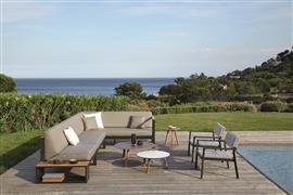 Modulový venkovní sedací nábytek. Sedací sestava má rámy z lakovaného hliníku s teakovými detaily na opěrkách. Moduly Vám umožní vytvořit sedací sestavu přesně podle Vašich představ a prostorových možností.