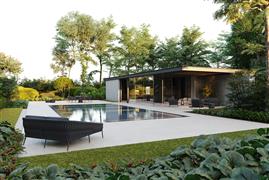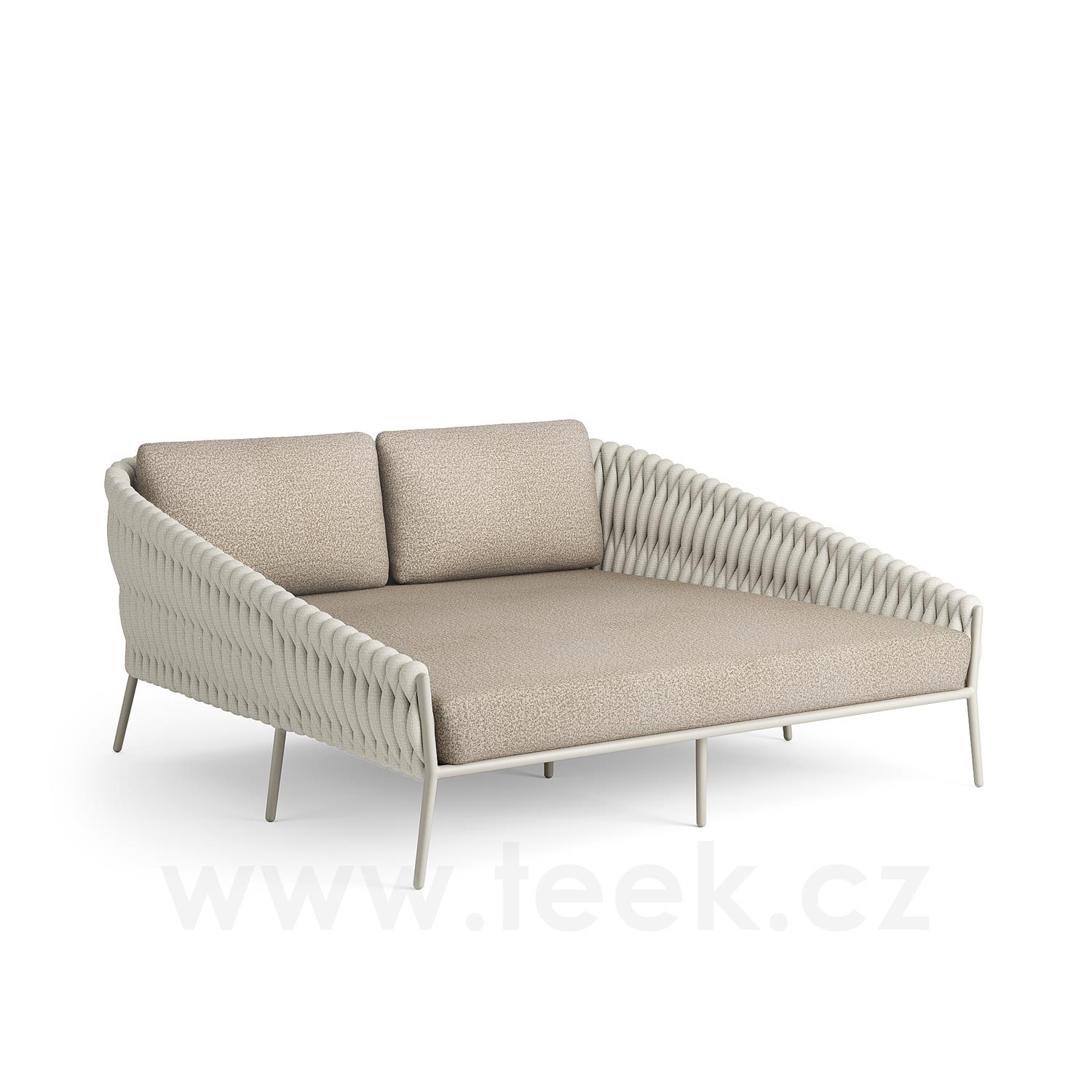 Liege Fortuna Socks, Jati Kebon, 167x172x83 cm, Rahmen Aluminium-Dünenmatte, Geflecht Leinen 14 mm, Sitzkissen Outdoor-Stoff Sunproof Jalousie Beige