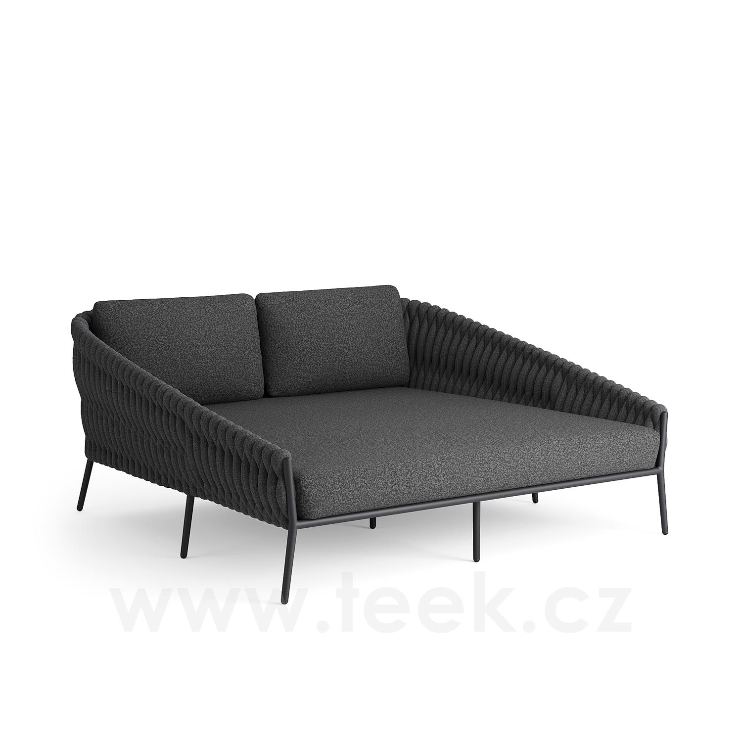 Liege Fortuna Socks, Jati Kebon, 167x172x83 cm, Rahmen Aluminium anthrazit matt, Geflecht anthrazit 14 mm, Sitzkissen Outdoor-Stoff Sunproof Jalousie Dunkelgrau