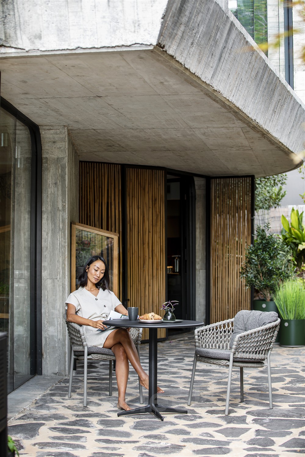 Stylish outdoor dining armchair from the Ocean Soft Rope collection by Cane-line.