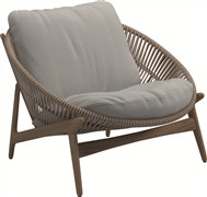 Low Chair Bora, Gloster, Teak, Synthetic Rattan, Outdoor Fabric