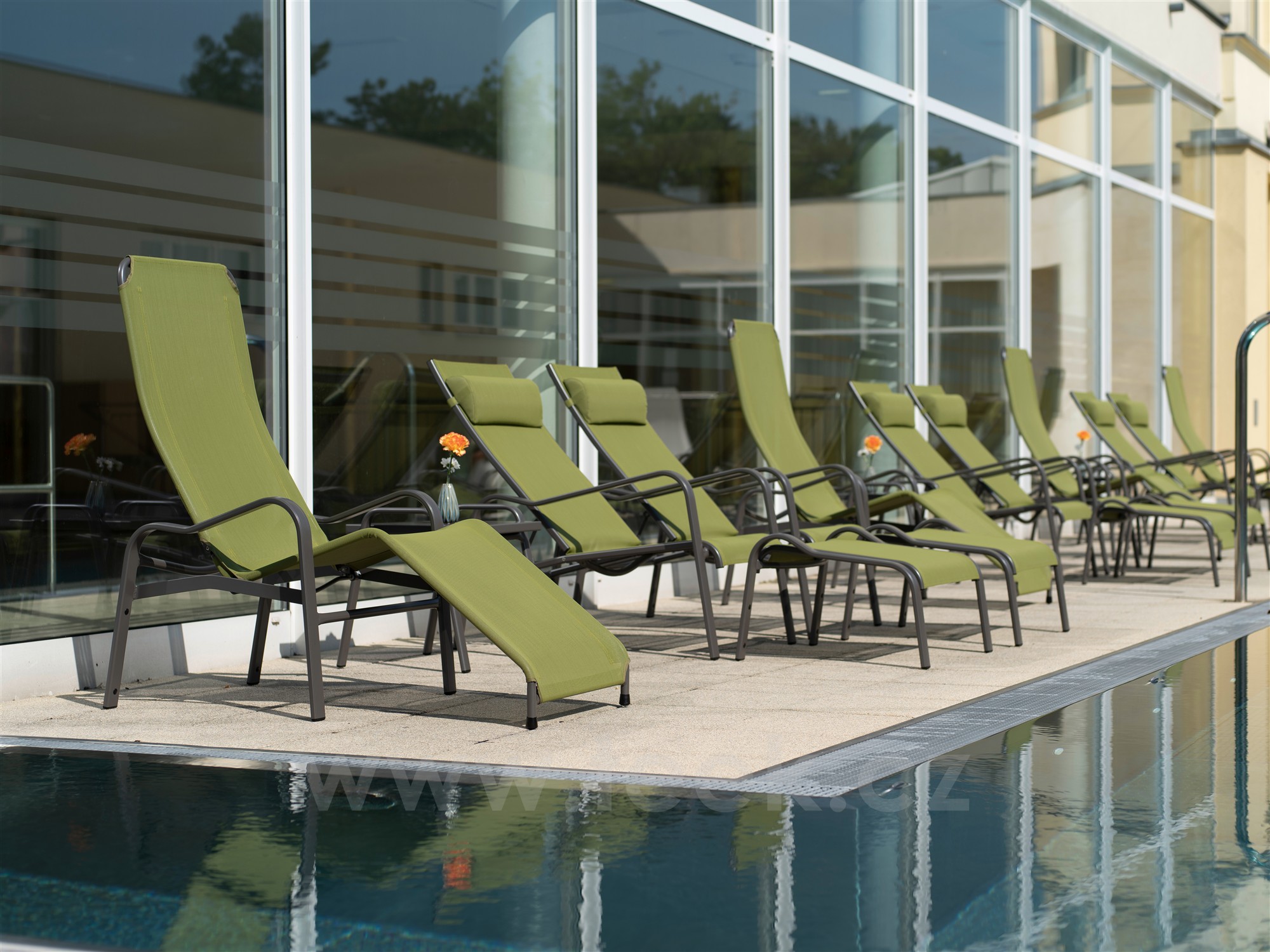Relaxing garden lounger Barbados Premium Neo by Karasek. The garden wellness lounger is all-aluminium, which makes the furniture very resistant to weather conditions. The chaise lounge is made of Karatex (textilen), which dries quickly, is breathable and very comfortable.