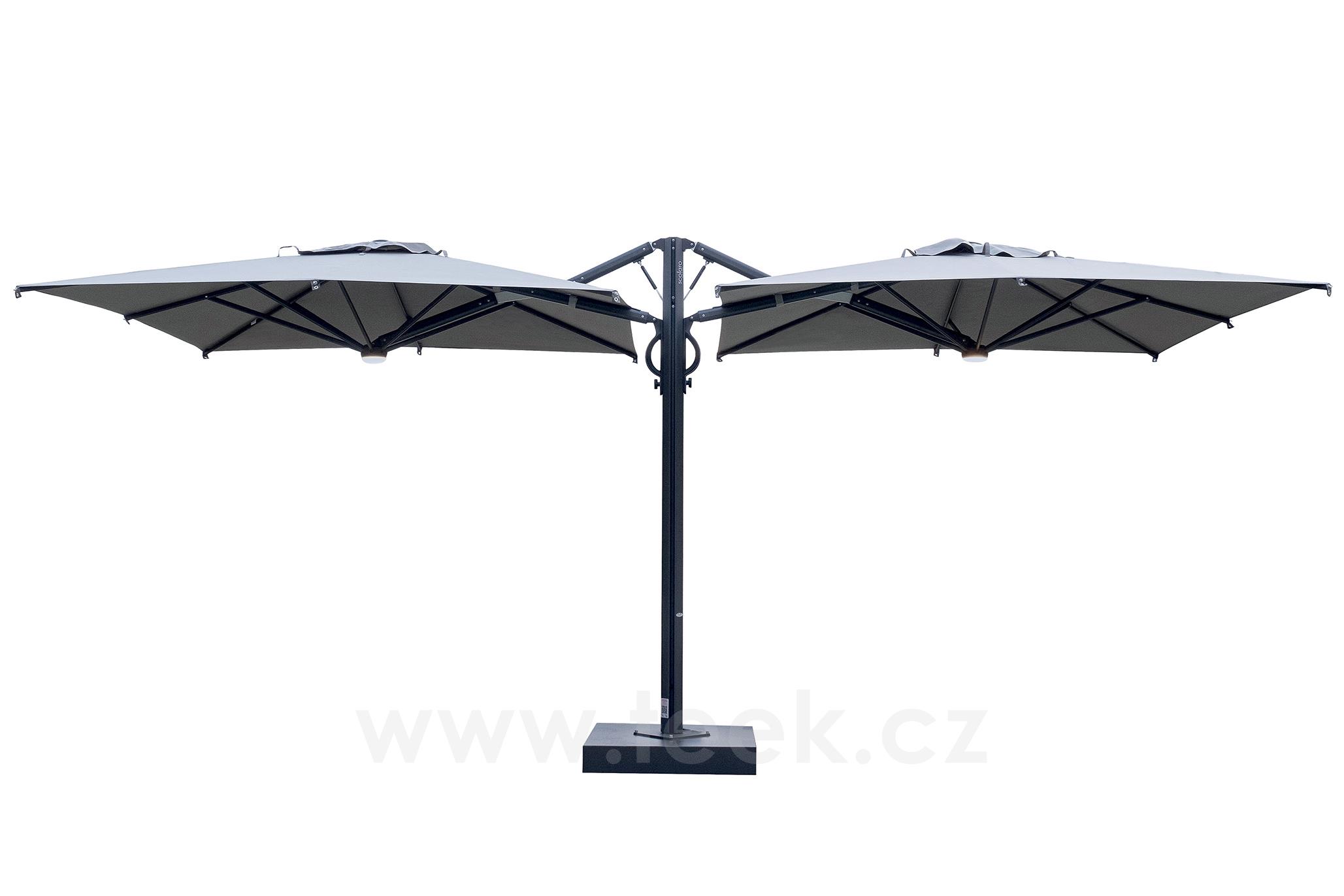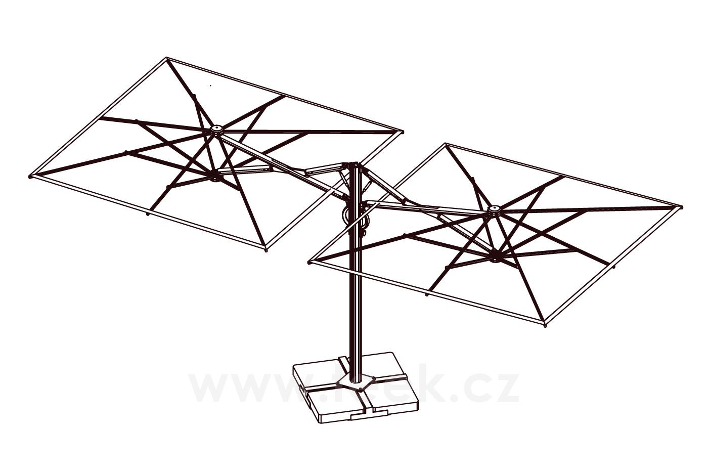 Double side umbrella Dual T, Scolaro, 700x350 cm, frame painted aluminium Carbon, acrylic cover 350 g/m2, colour according to swatch