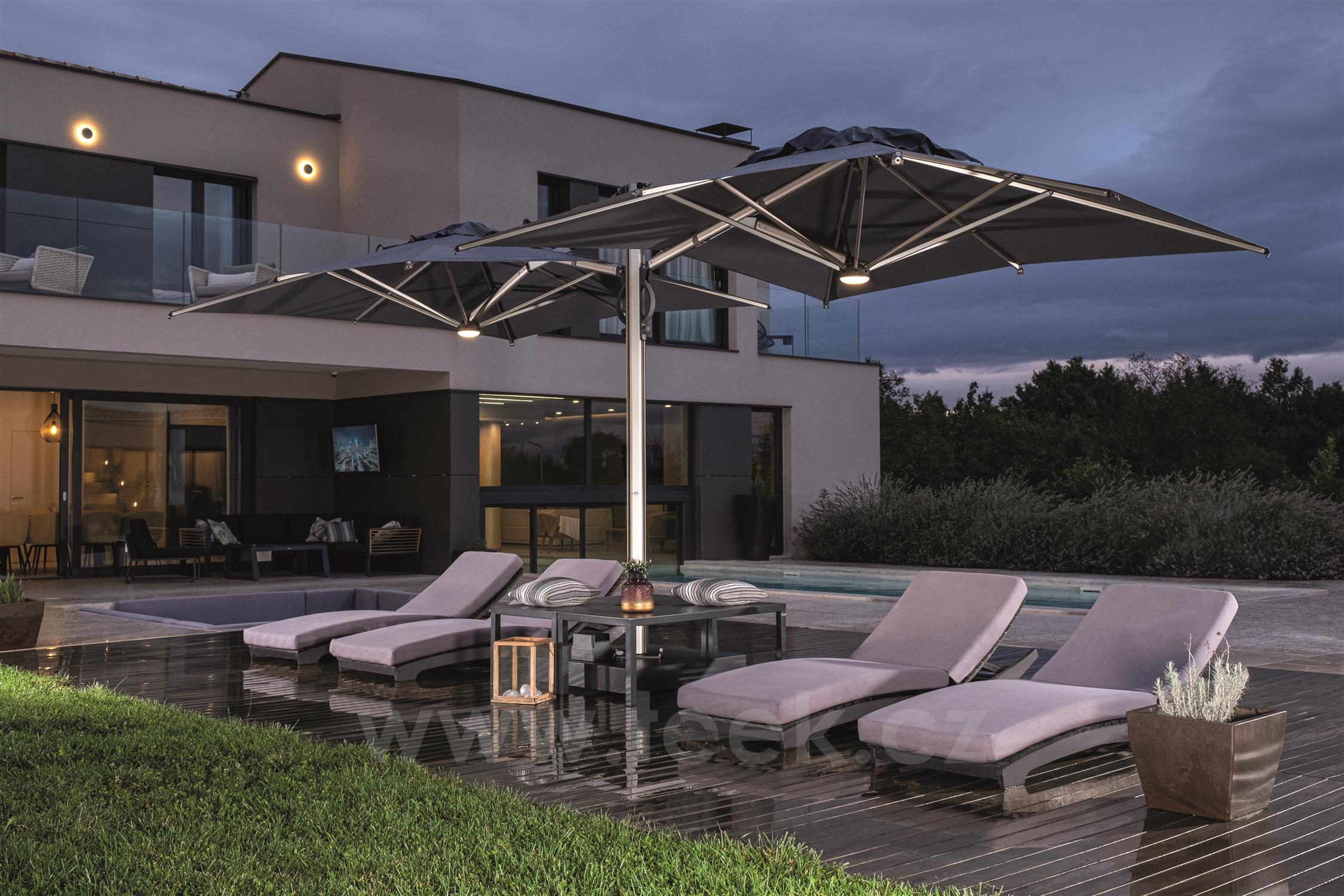 The Italian brand Scolaro's Dual T parasol is a solid parasol with a solid construction.