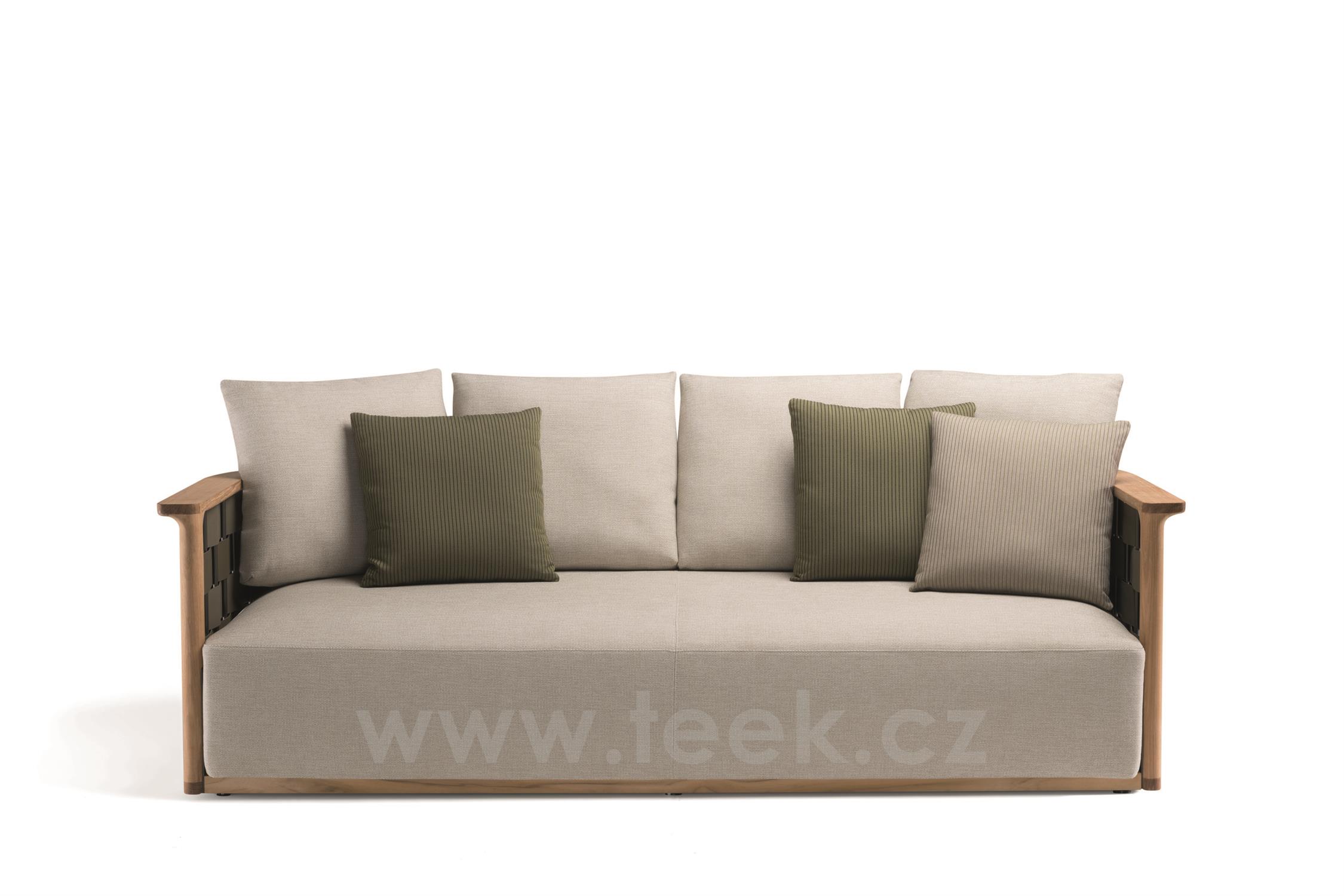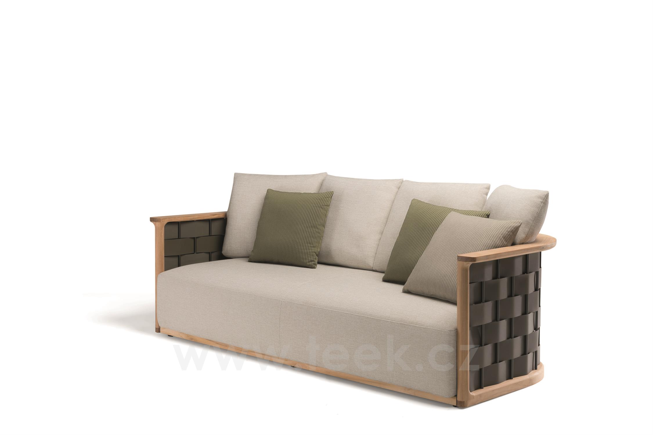 Palinfrasca 3-Seater Sofa by Molteni, 208×98×67 cm, teak frame, teak/olive green EVA polyurethane weave, seat upholstered in outdoor fabric, category L, colour as per sample book