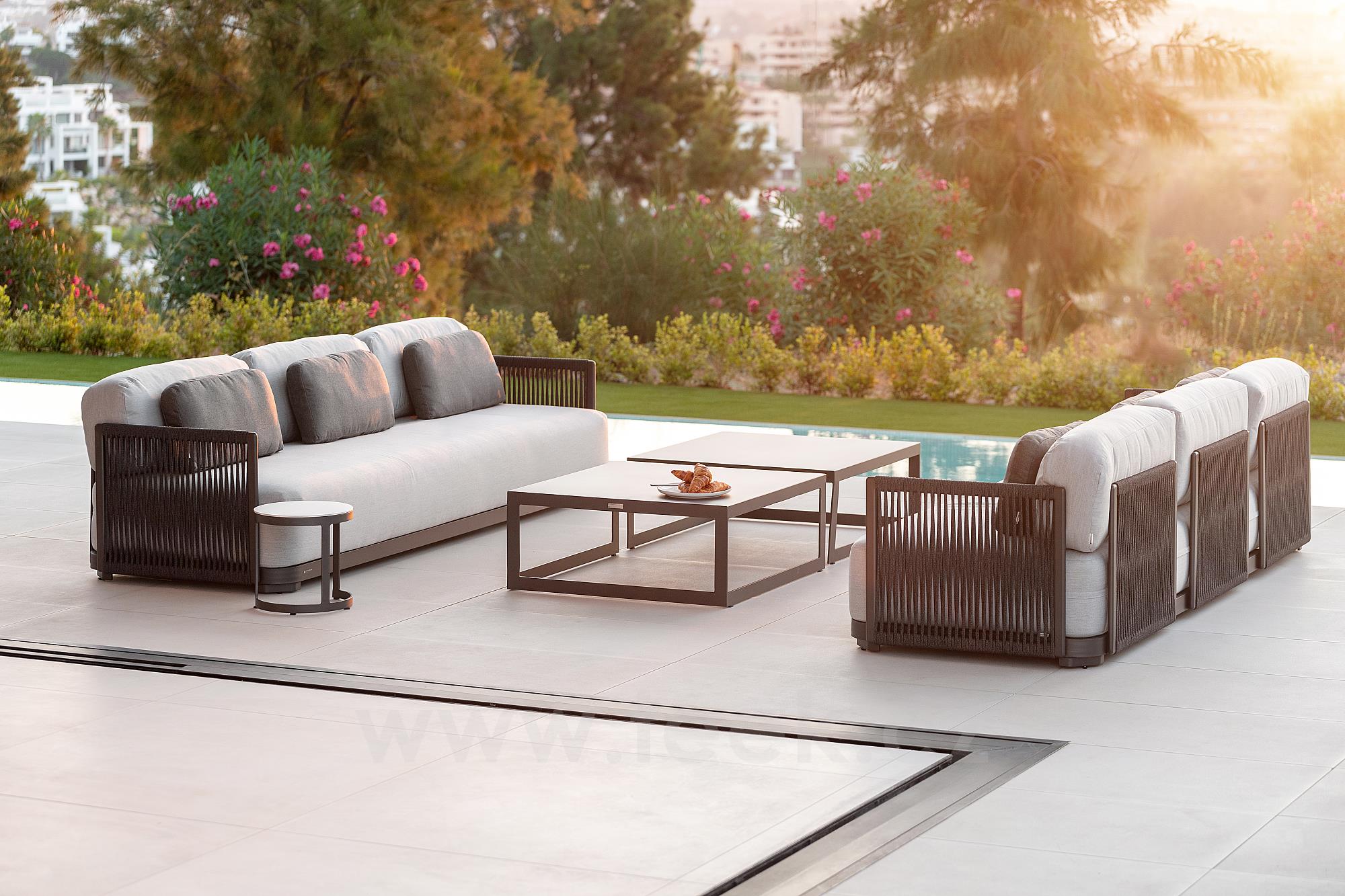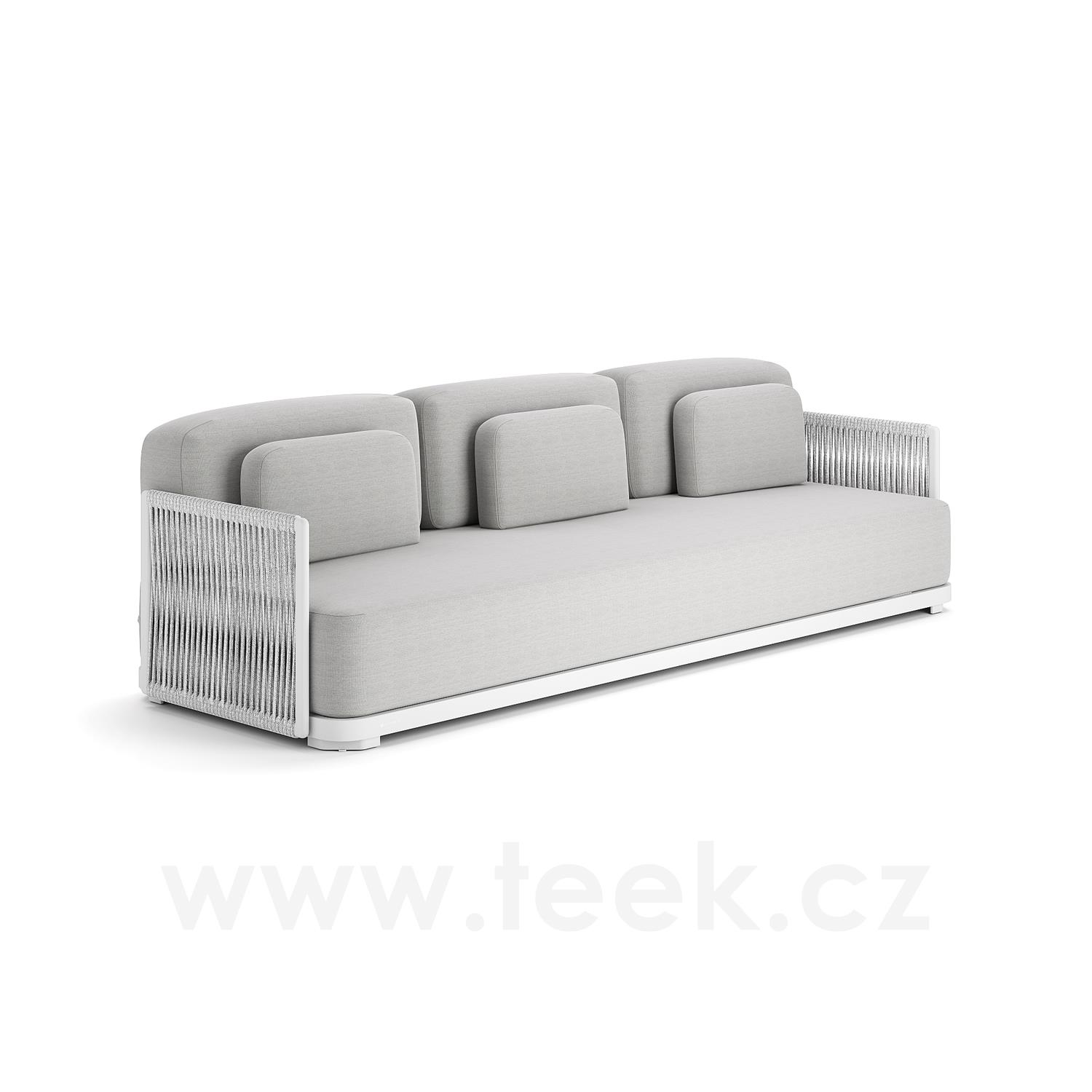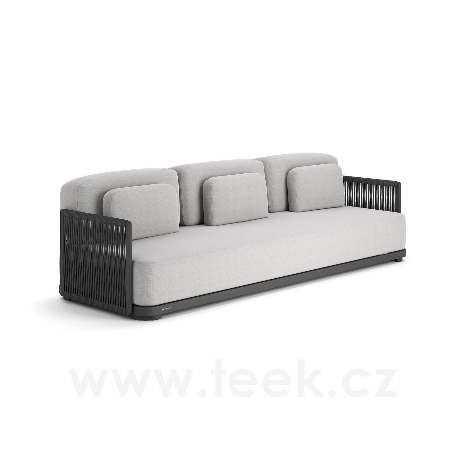 3-Sitzer-Sofa Durbuy, Jati Kebon, 270x90x61 cm, Gestell Aluminium, Kabelgeflecht, Sitzkissen Outdoor-Stoff Sunbrella, Farbe nach Muster