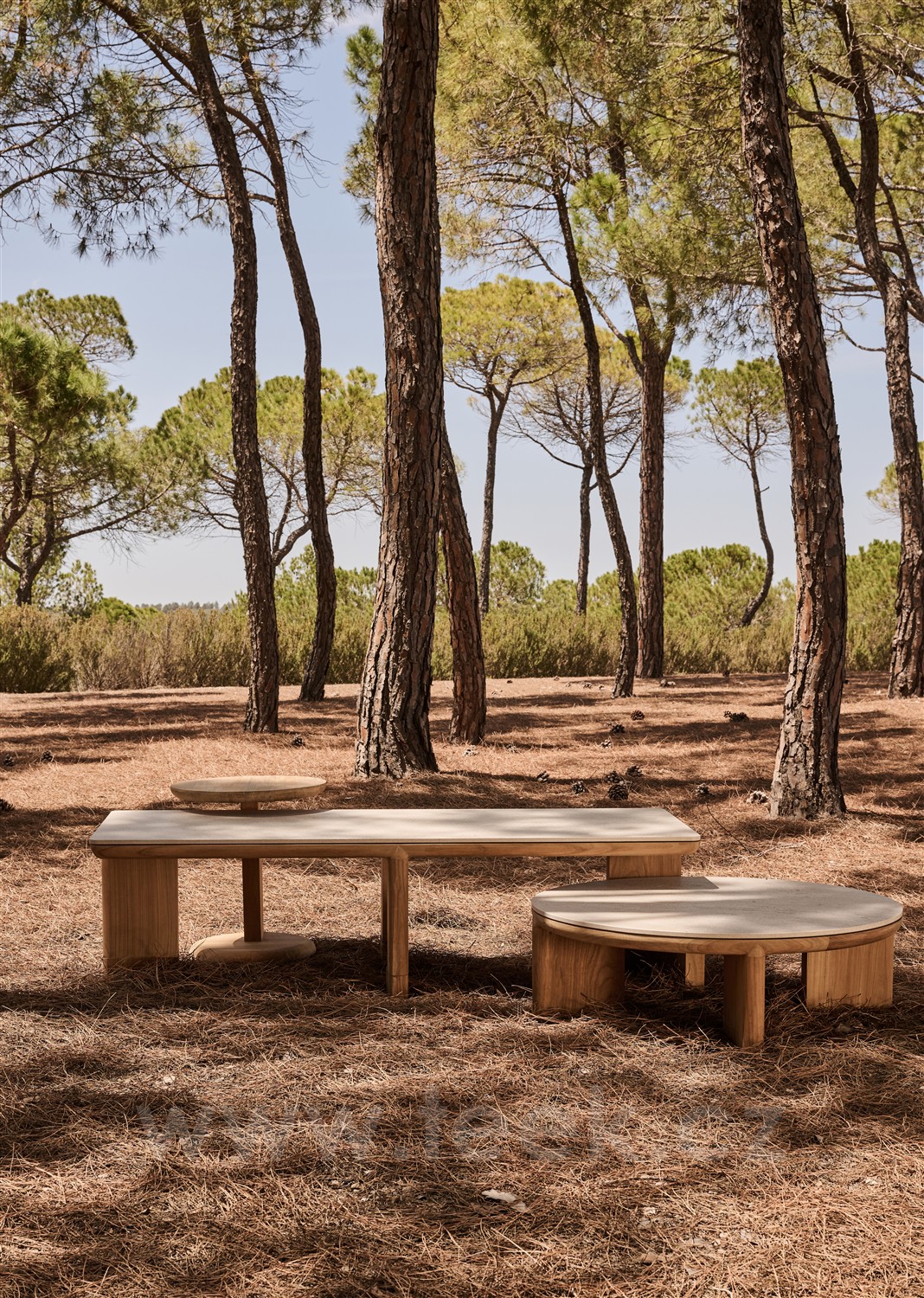 Konferenční stolek Amanu, Tribu, kulatý 90x35 cm, rám teak, deska keramika