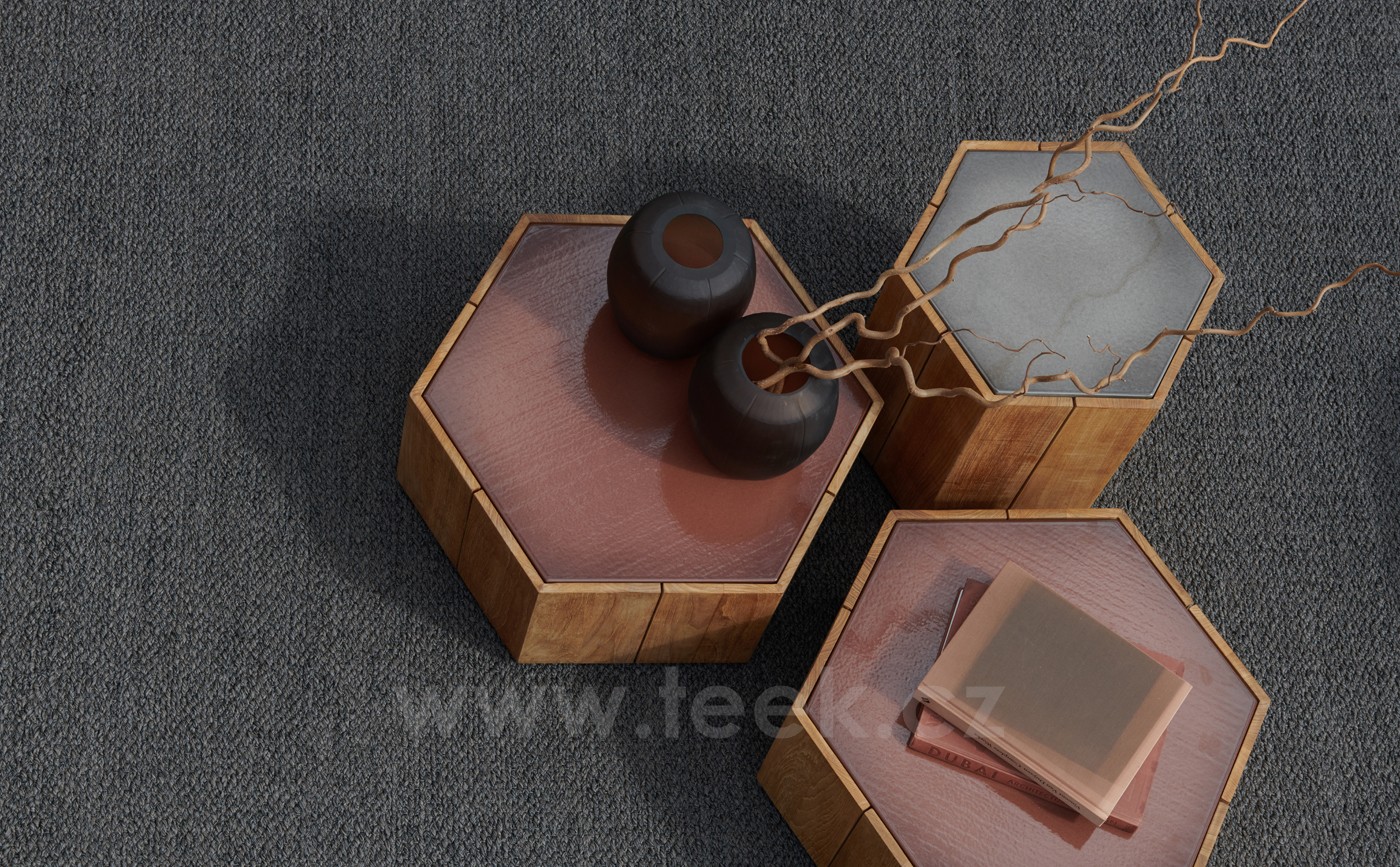Odkládací stolek Hexagon, Tribu, 50x49 cm, rám teak, deska glazovaný lávový kámen barva wenge