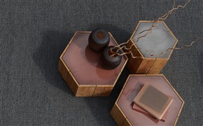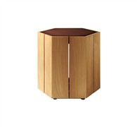 Odkládací stolek Hexagon, Tribu, 50x49 cm, rám teak, deska glazovaný lávový kámen barva hemp