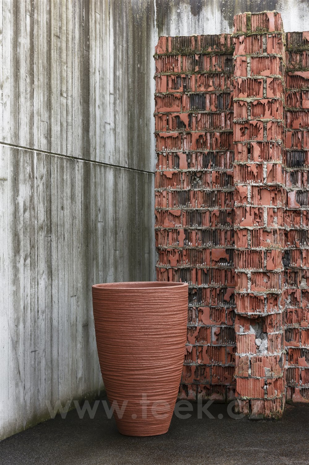 Luxury outdoor flower pot made from fired clay/ceramics, produced by the Belgian manufacturer Domani.
