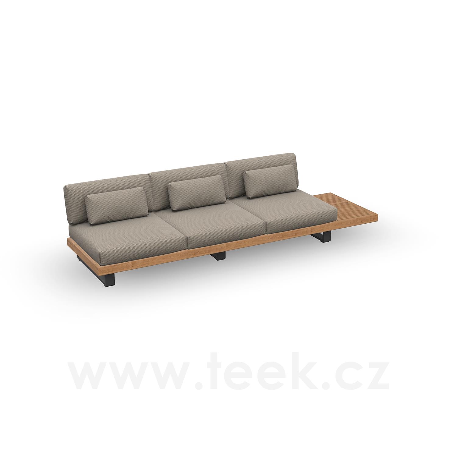Truro 3-seater end piece with storage table, Jati Kebon, 320x90x60 cm, teak/aluminium frame, charcoal matt, without cushions