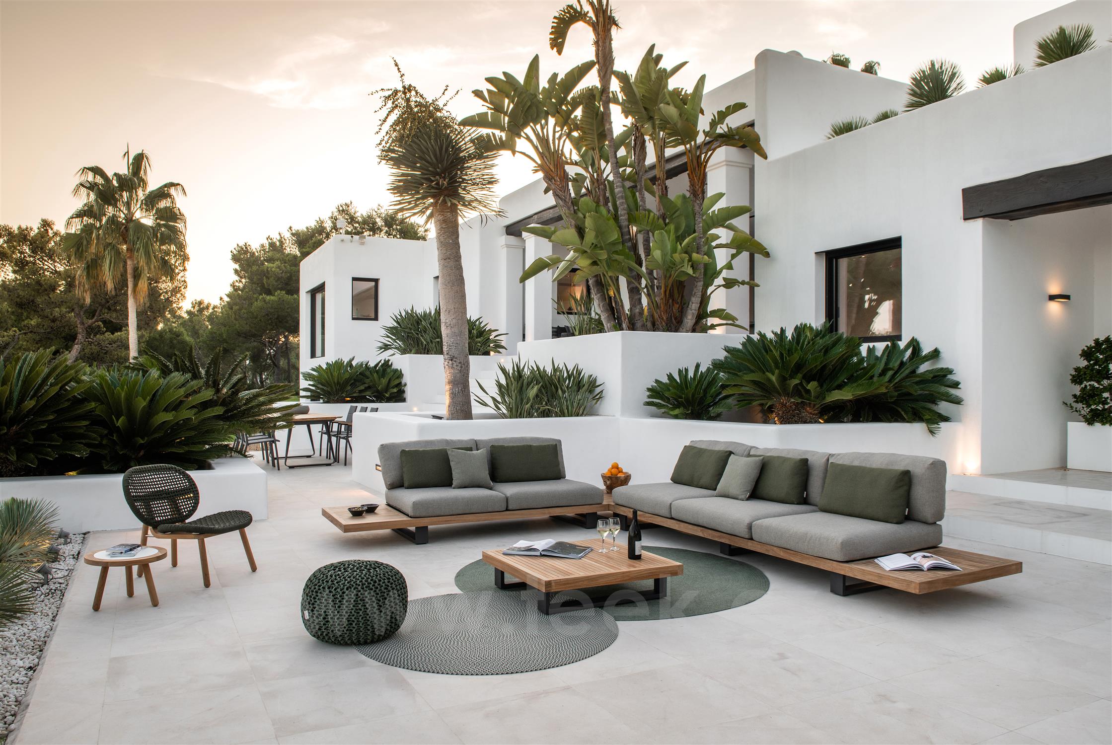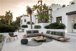 Outdoor modular piece with storage table from the Truro collection by the Belgian brand Jati Kebon.