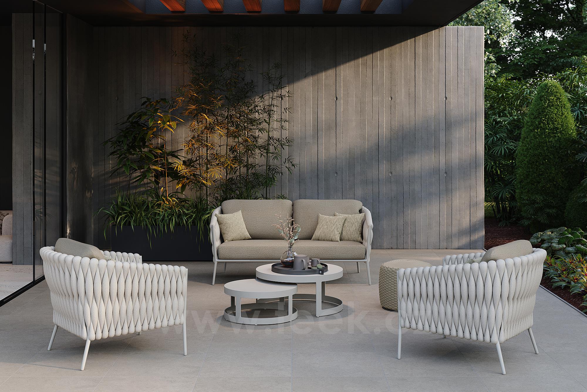 Venkovní sedací sestava z kolekce Fortuna Socks od belgické značky Jati Kebon.