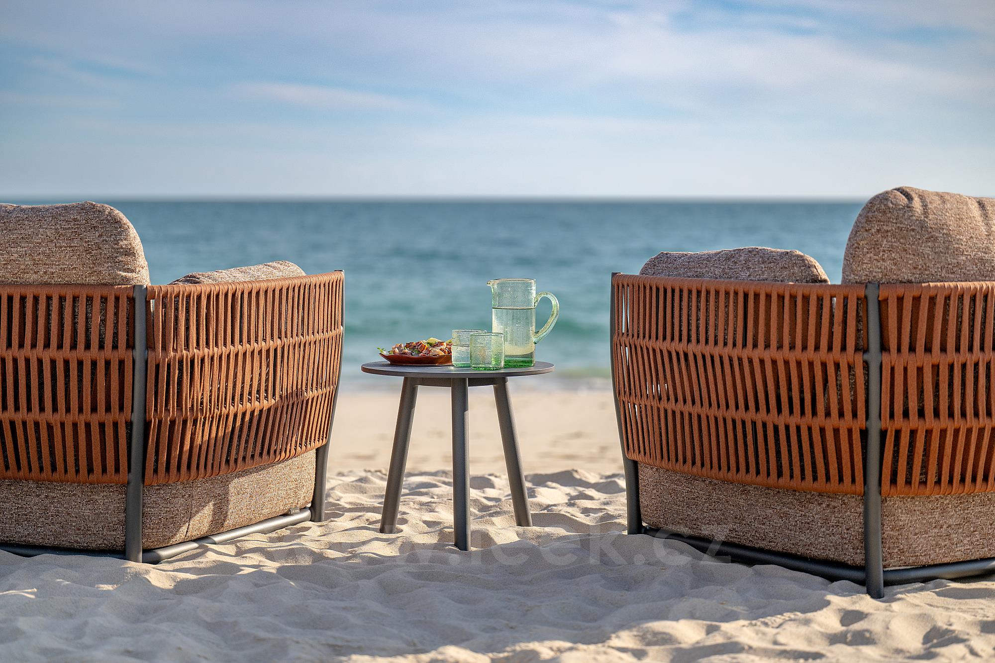 Nízký stolek Ronda, Jati Kebon, 60x34 cm, hliník, keramika