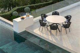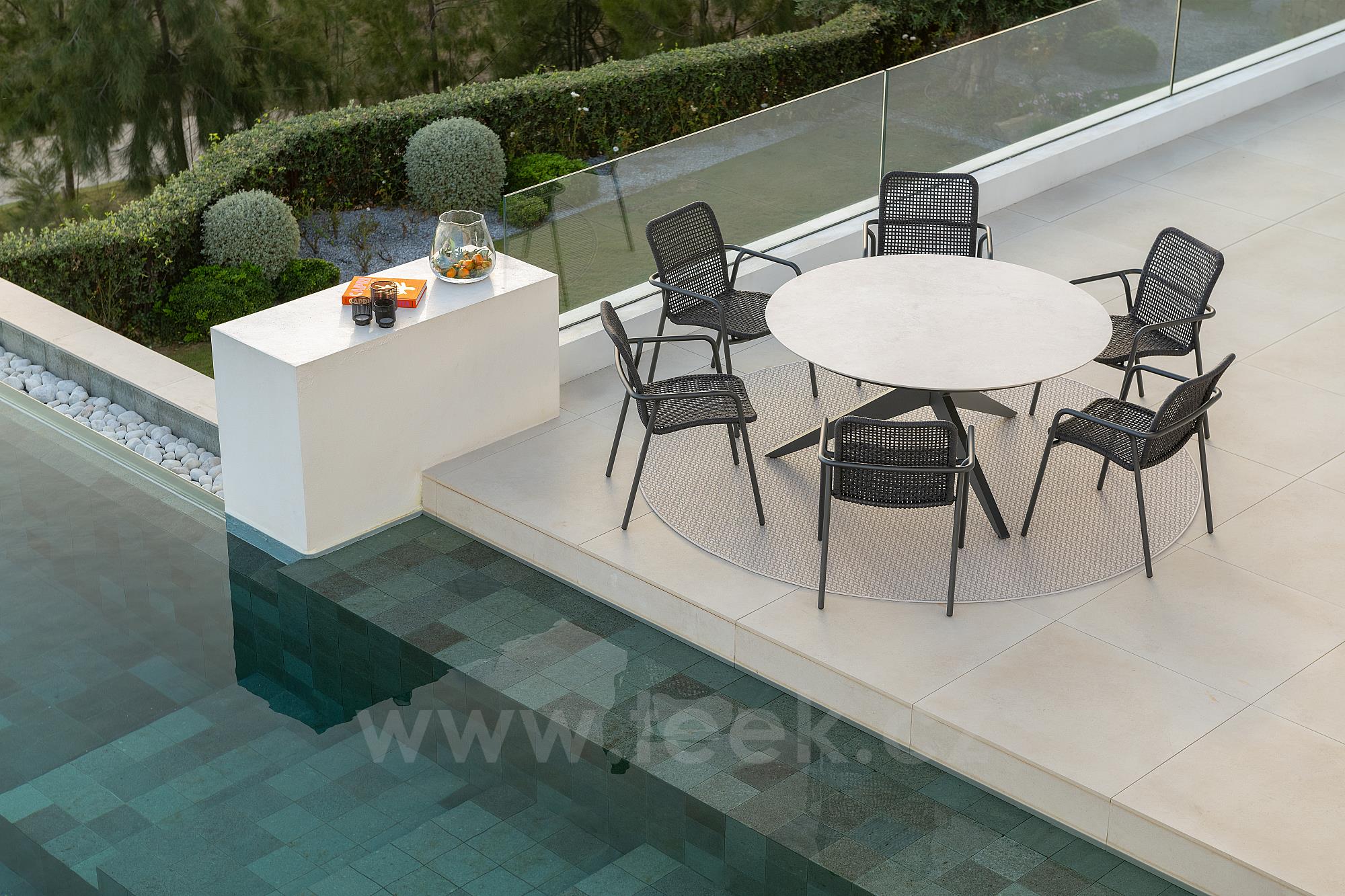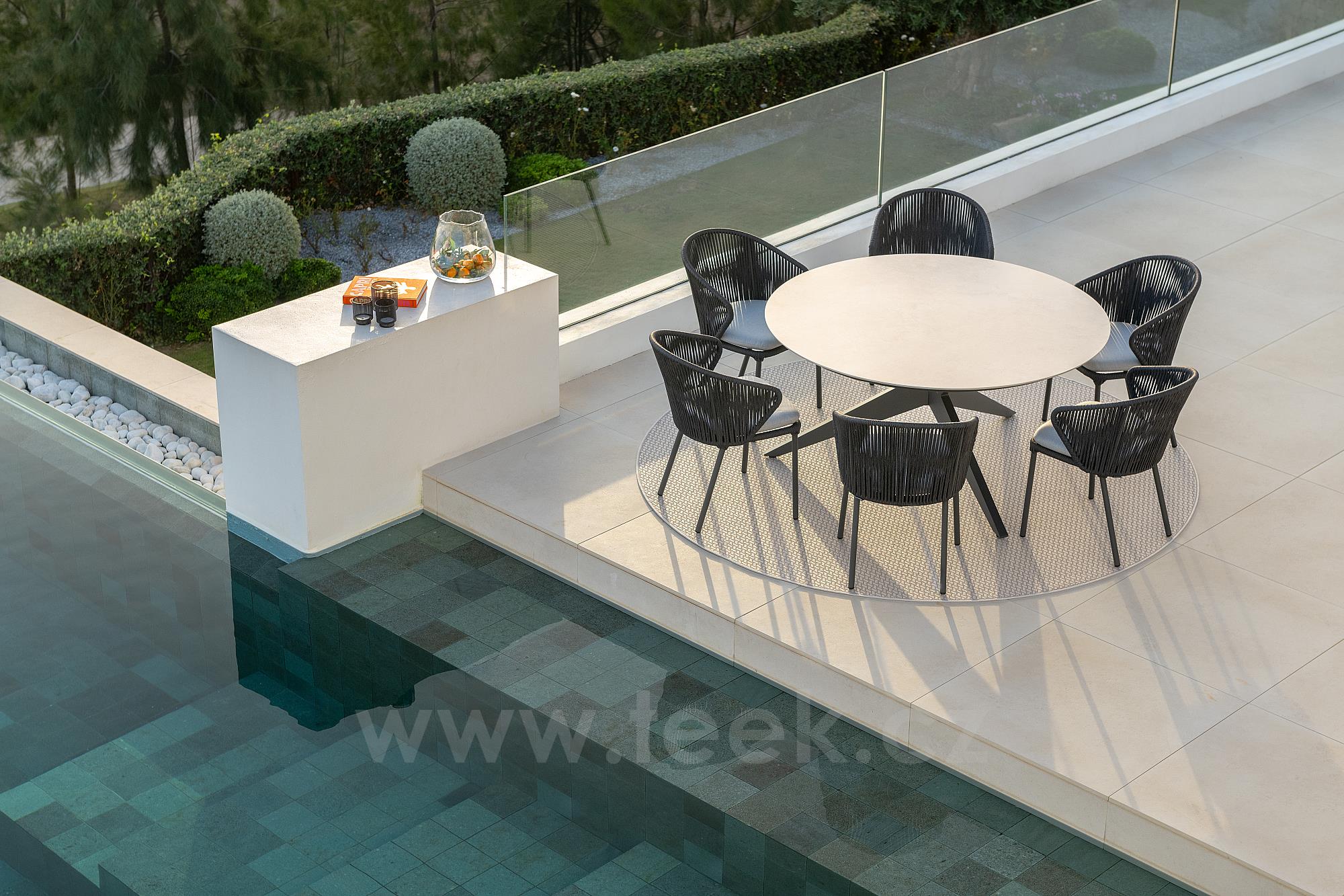 Jídelní stůl Yate, Jati Kebon, kulatý 150x72,6 cm, hliník, keramika