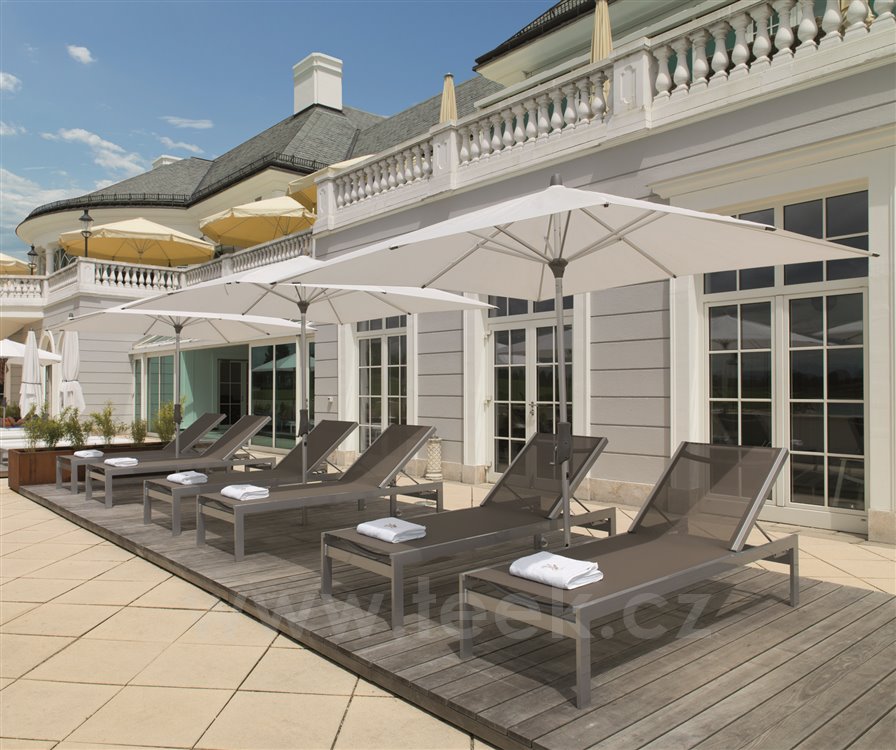 Zahradní lehátko Atlanta značky Karasek. Konstrukce zahradního lehátka je z lakovaného hliníku a výplet z pohodlného a pružného textilenu (Karatex). Zahradní lehátko je vhodné také pro profesionální použití do zátěžového provozu.