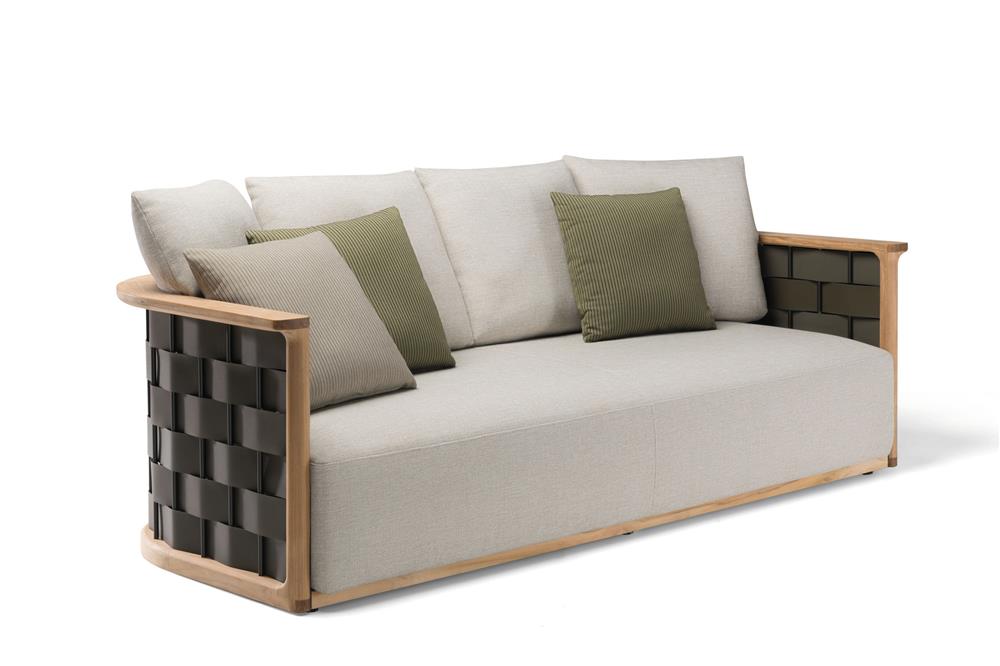 Palinfrasca Sofa z kolekce Landmark navazuje na design Luca Medy z roku 1994. Masivní teaková konstrukce s výrazným tkaným vzorem a organickými liniemi spojuje tradici s moderním pojetím.