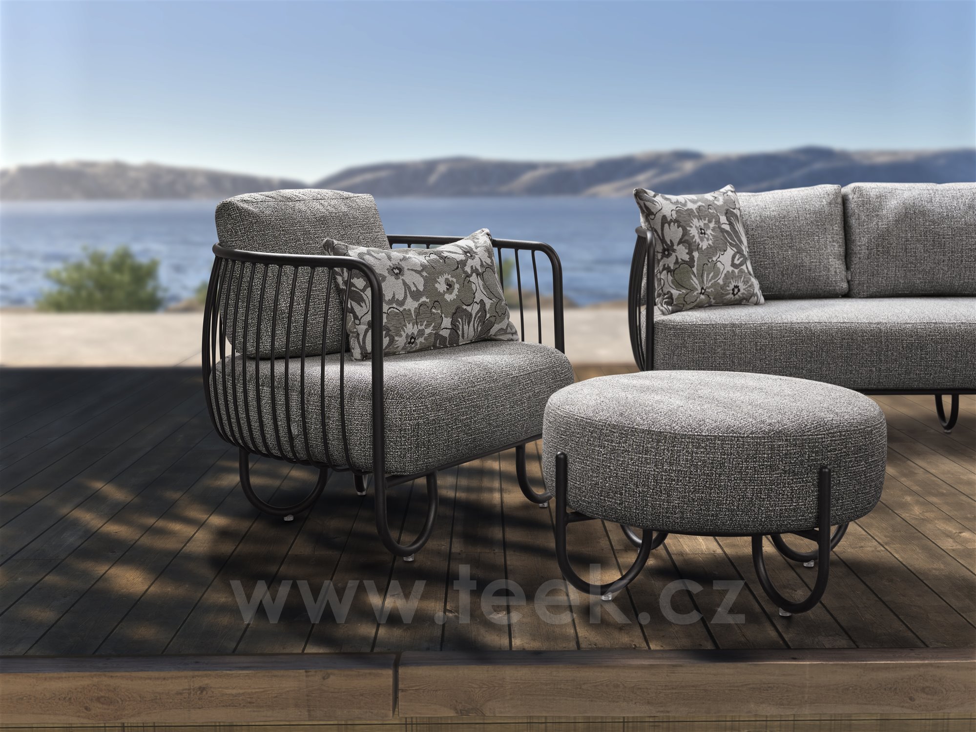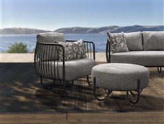 Podnožka Ila, Stern, průměr 72 cm, výška 40 cm, rám lakovaný hliník černý (black matt), venkovní látka barva Mélange grey, rychleschnoucí výplň
