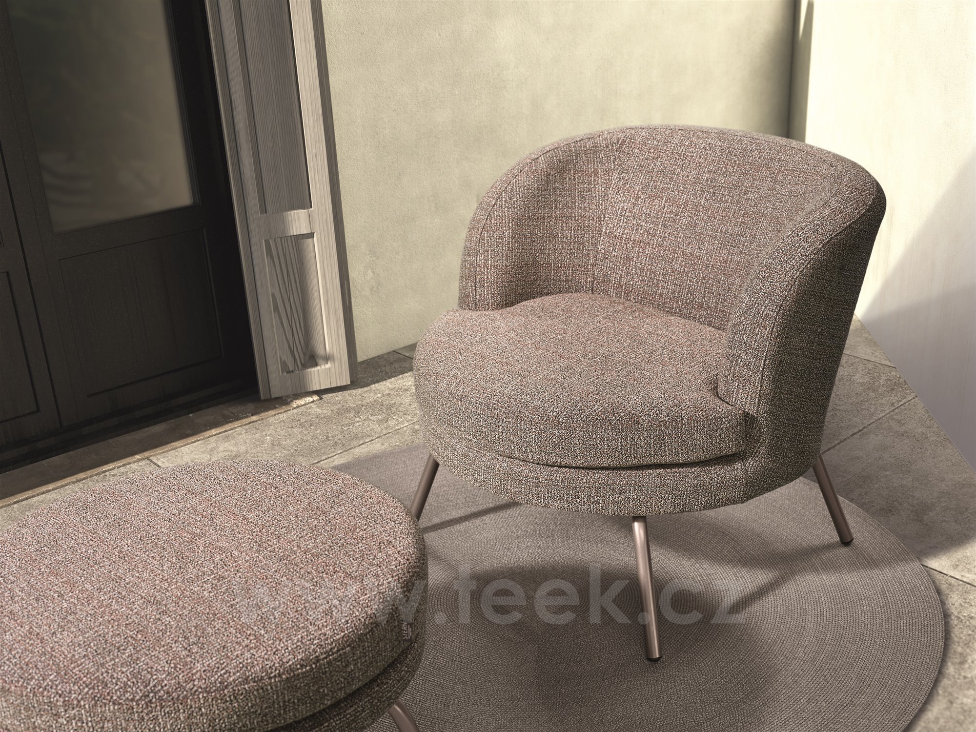 Podnožka Noa, Stern, průměr 64 cm, výška 40 cm, rám lakovaný hliník sand matt, venkovní látka barva Mélange rosé, rychleschnoucí výplň