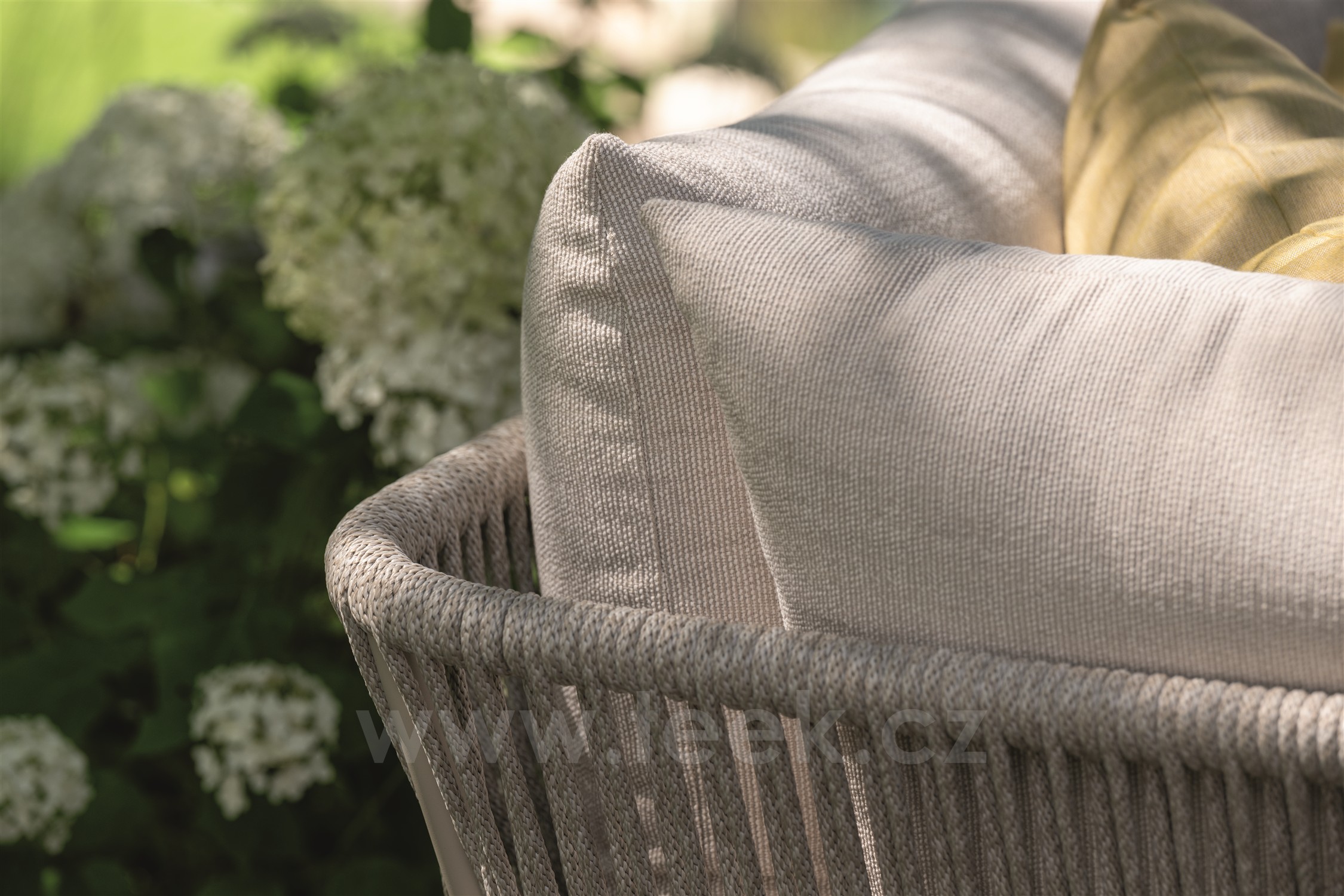 - Sedáky a opěrné polštáře: potah venkovní látka (100% akryl), výplň běžná pěna (nutno je chránit před větším deštěm.) Potahy jsou snímatelné.