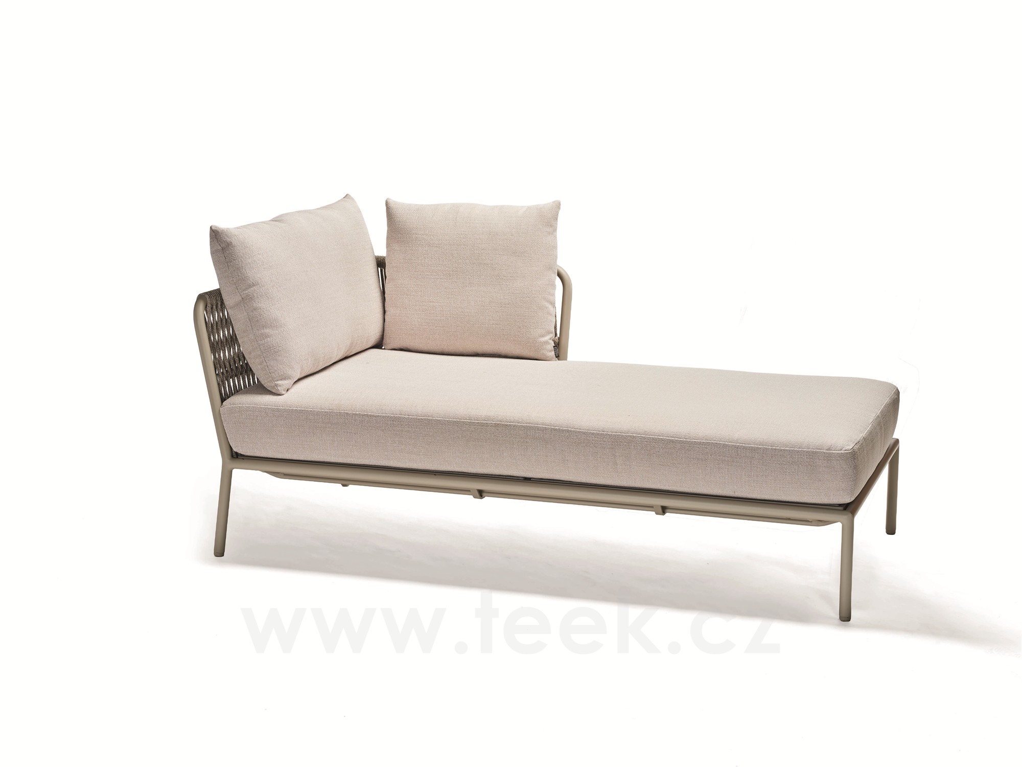 Lehátkový postelový levostranný díl Romy, Stern, 90x166x82 cm, rám lakovaný hliník šedobéžový (greige), lankový výplet greige, sedáky 100% akryl Muscat