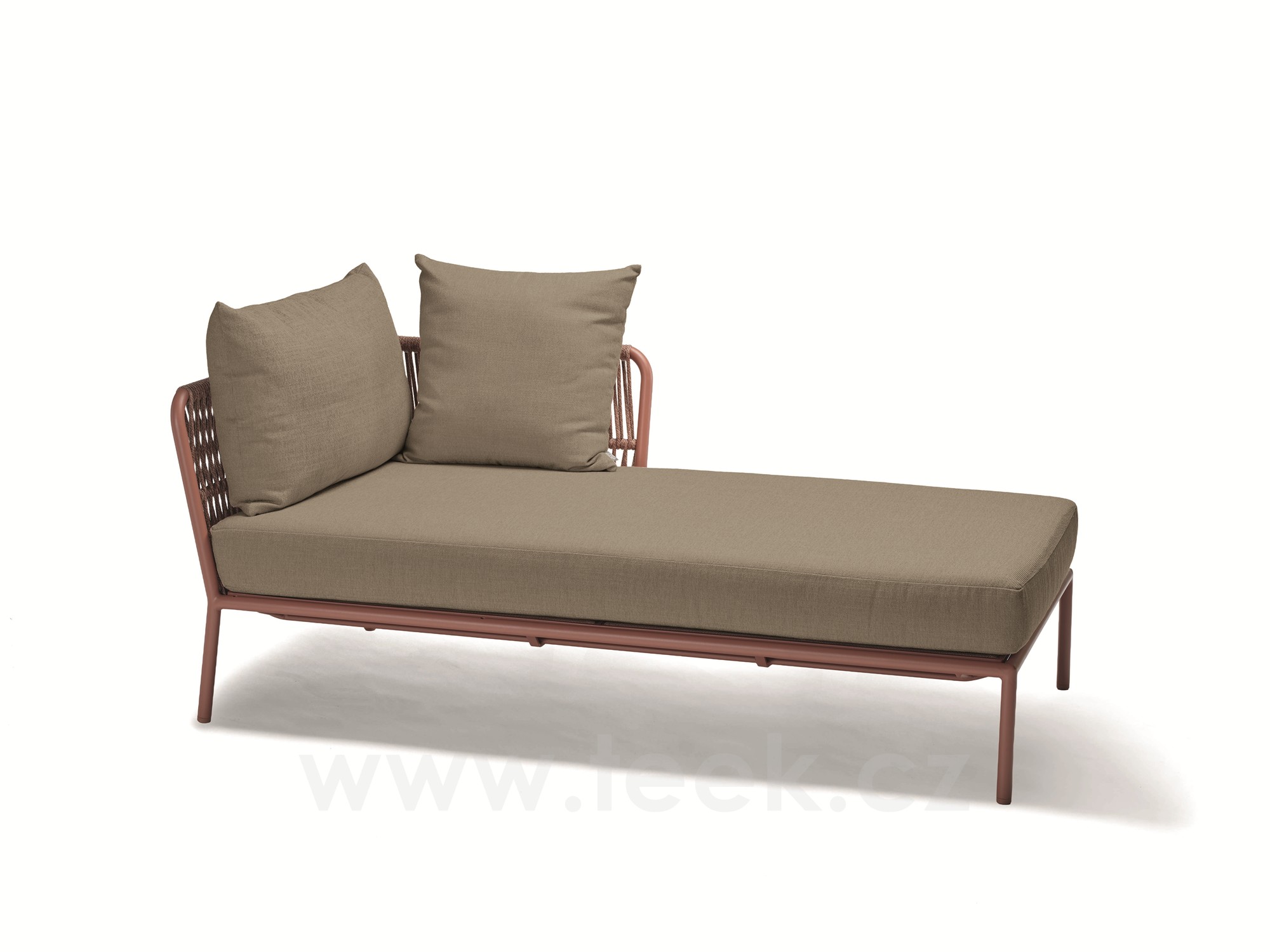 Lehátkový postelový levostranný díl Romy, Stern, 90x166x82 cm, rám lakovaný hliník Terra, lankový výplet Terra, sedáky 100% akryl Lychee