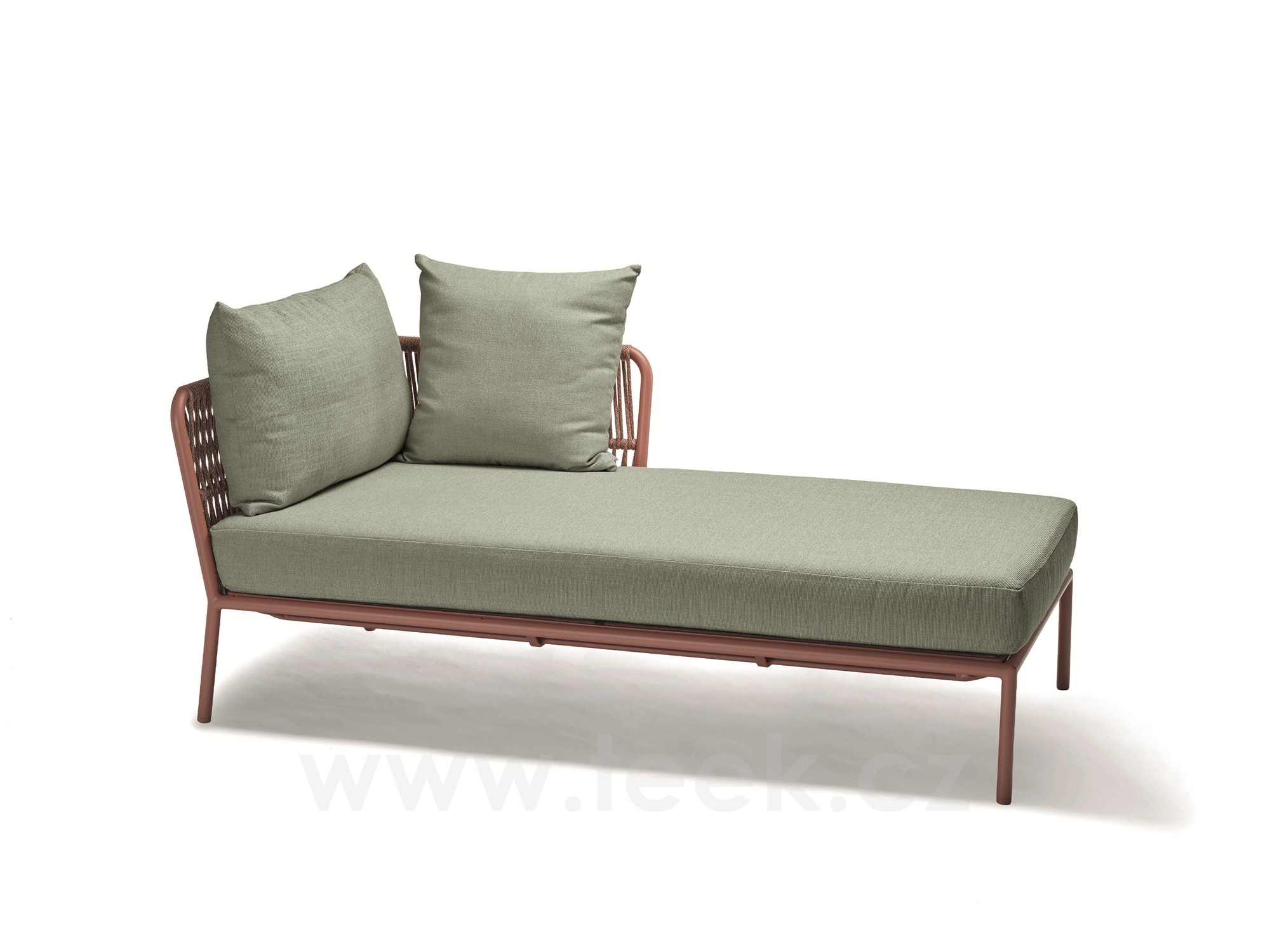 Lehátkový postelový levostranný díl Romy, Stern, 90x166x82 cm, rám lakovaný hliník Terra, lankový výplet Terra, sedáky 100% akryl Sage