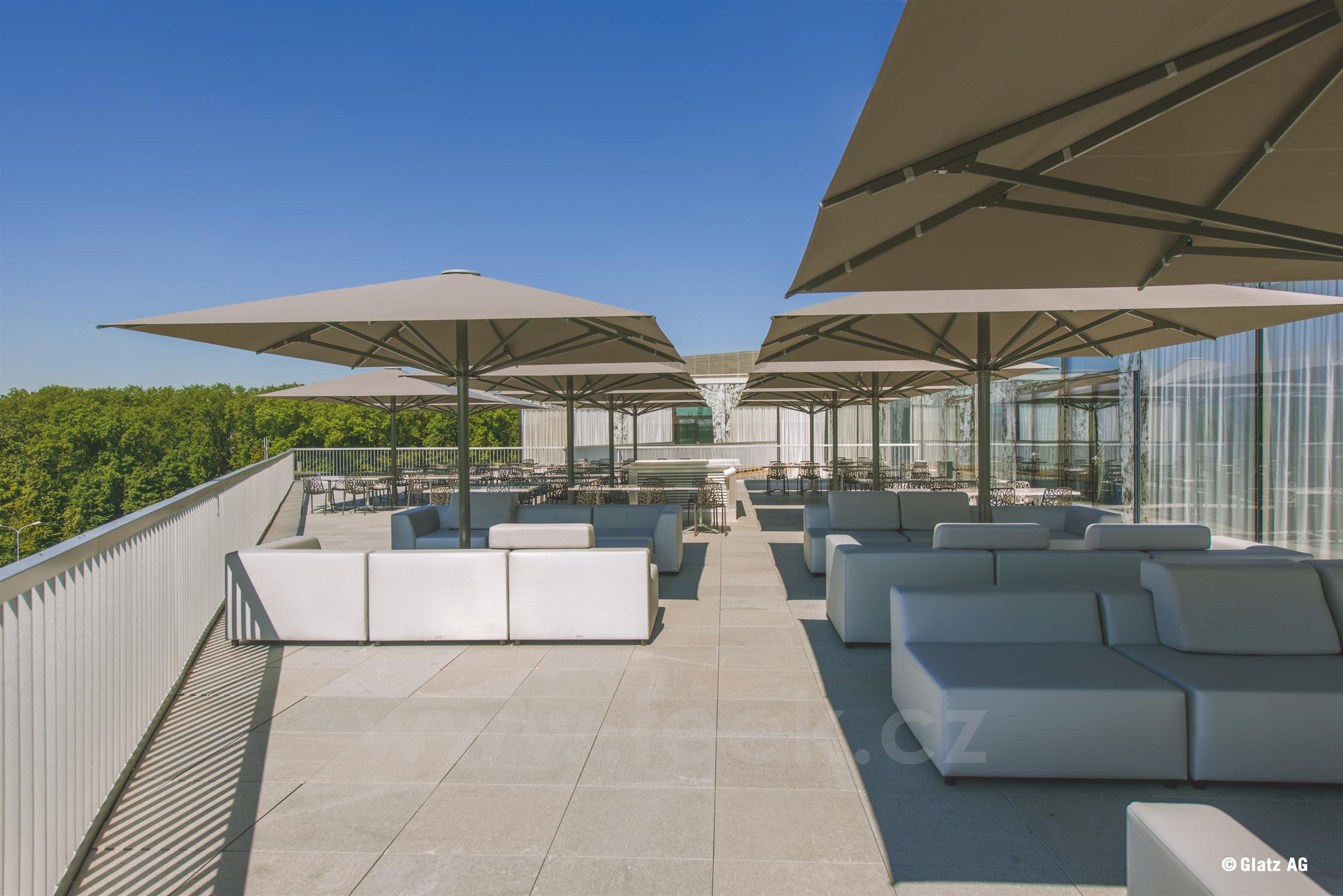 šedobéžové, taupe, béžové a hnědé slunečníky