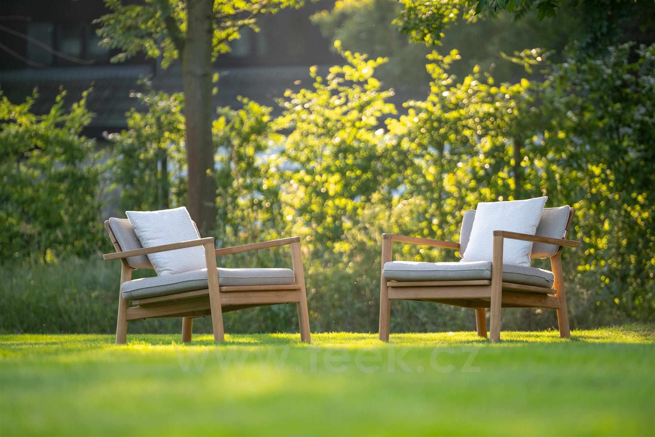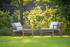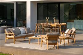 Sedacia súprava z teakového dreva z kolekcie Lynn Teak belgickej značky Jati Kebon.