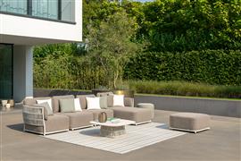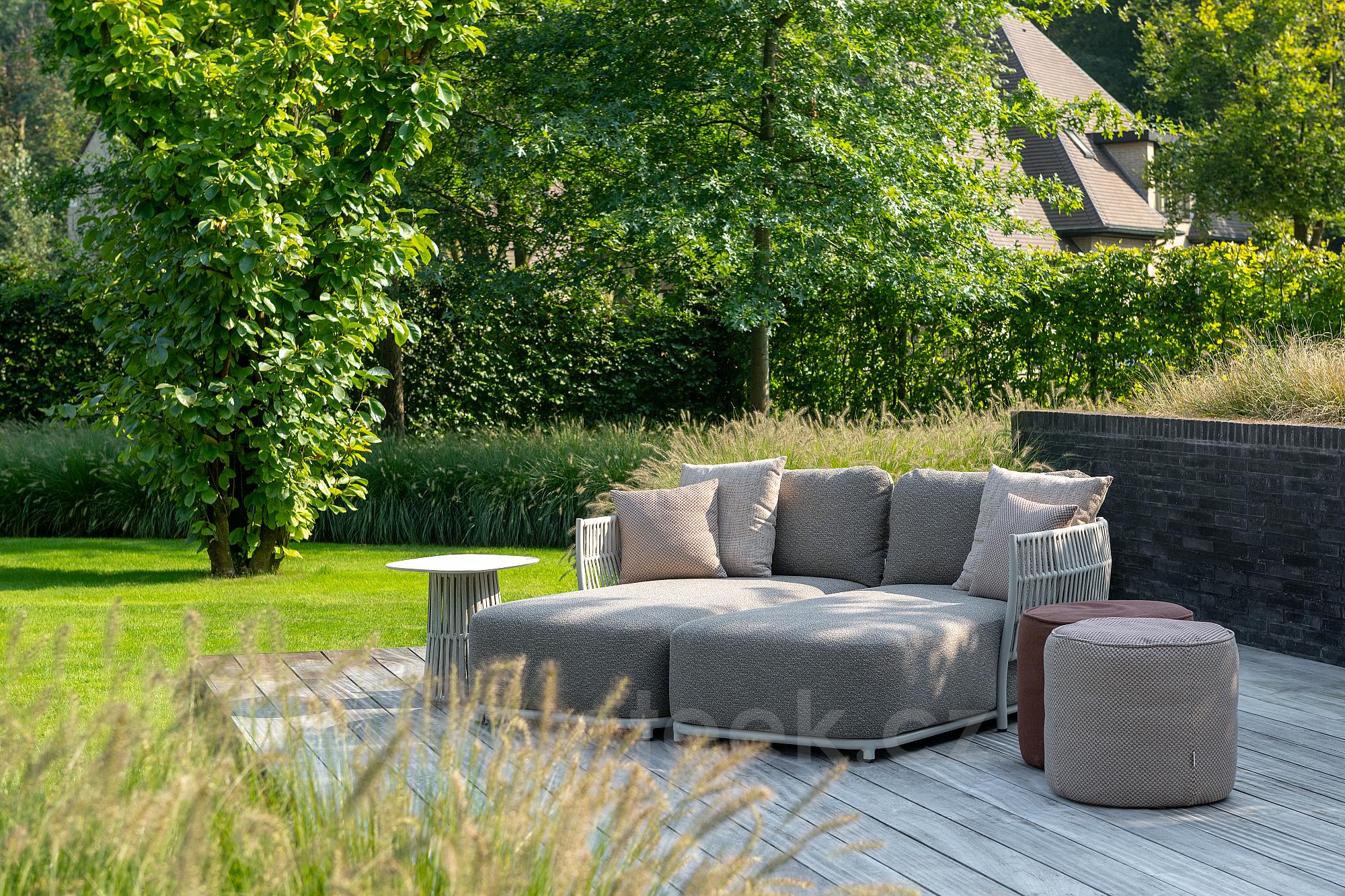 Relaxační díl levostranný Cala, Jati Kebon, rám hliník barva dune mat, pásový výplet barva linnen, bez sedáků