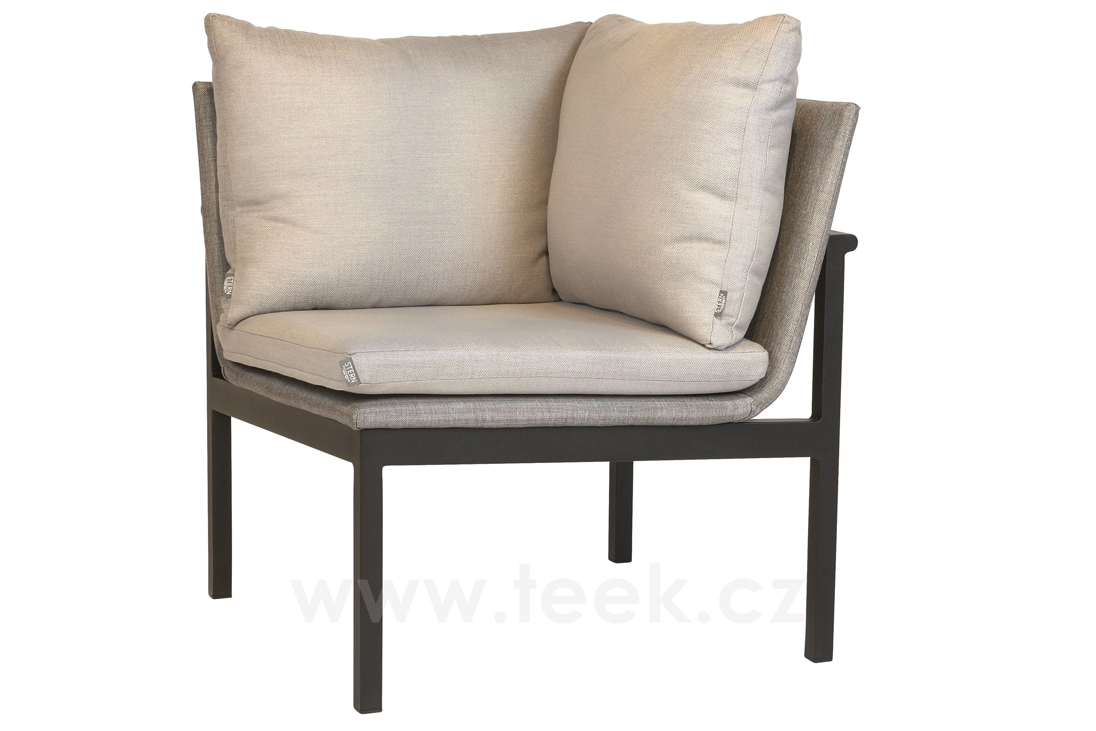 Rohový díl Tammo, Stern, 75x75x85 cm, rám lakovaný hliník šedočerný (anthracite), lankový výplet stone, venkovní látka pearl grey