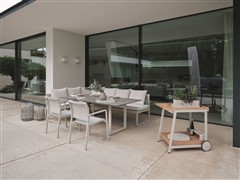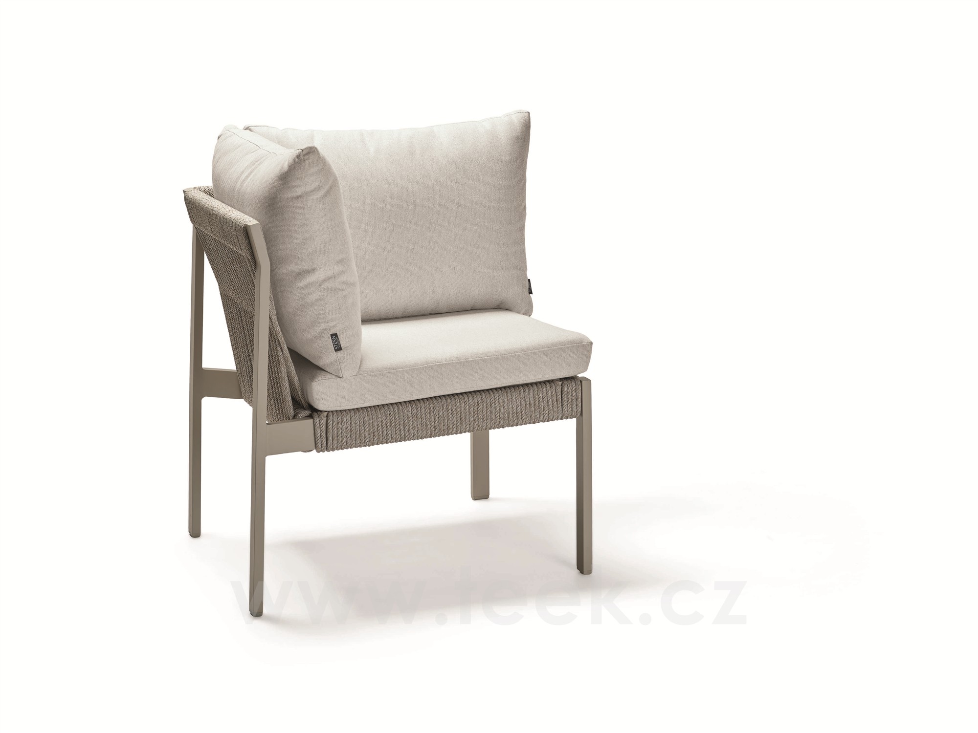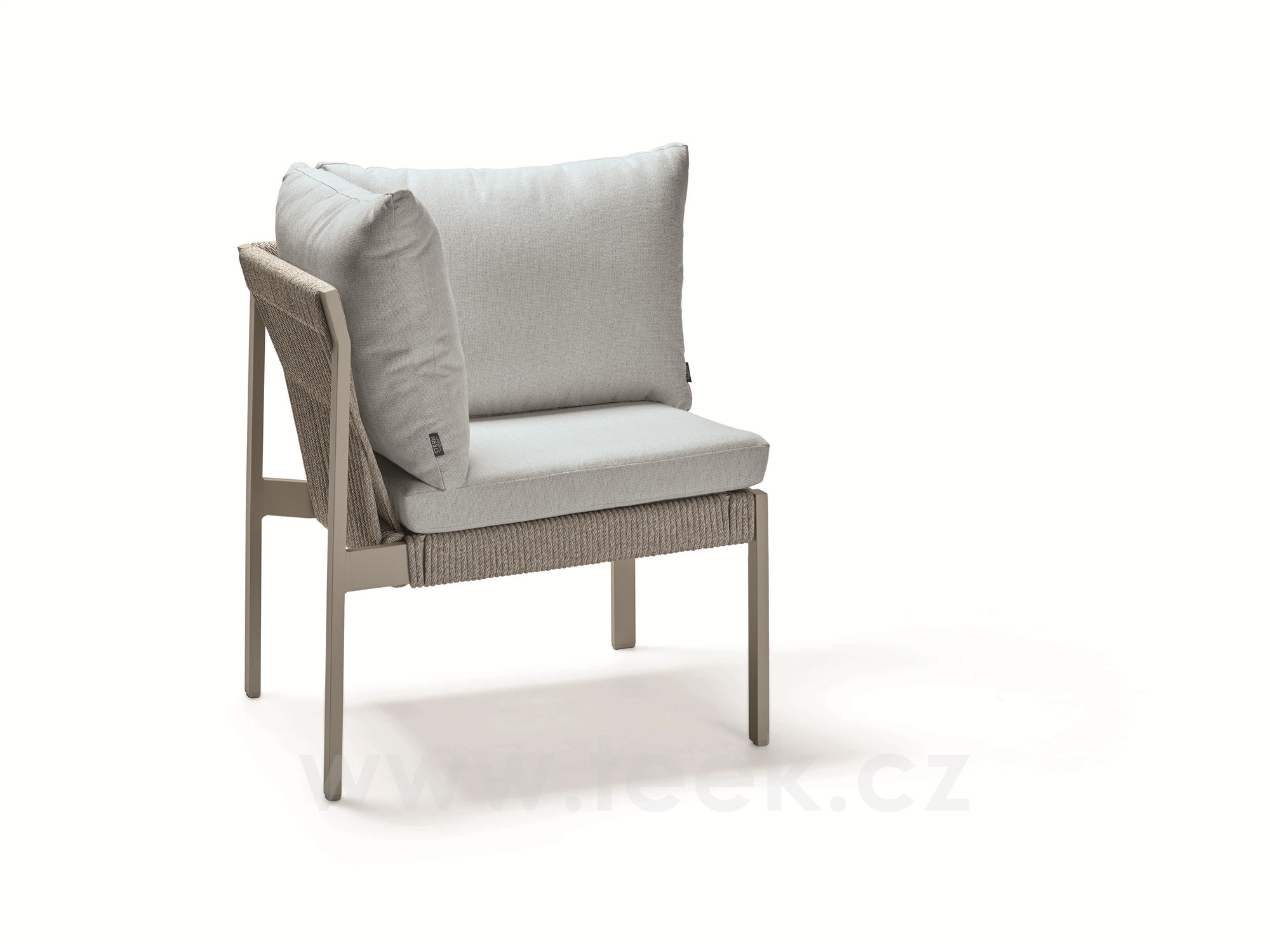 Rohový díl Tammo, Stern, 75x75x85 cm, rám lakovaný hliník greige, výplet lanko greige, sedáky 100% akryl Pearl Grey