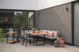 Rohový díl Tammo, Stern, 75x75x85 cm, rám lakovaný hliník greige, výplet lanko greige, sedáky 100% akryl Granite Grey