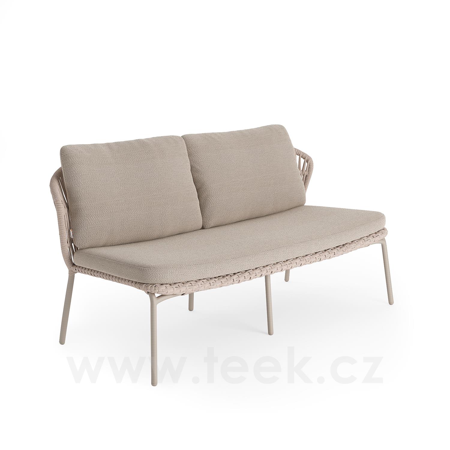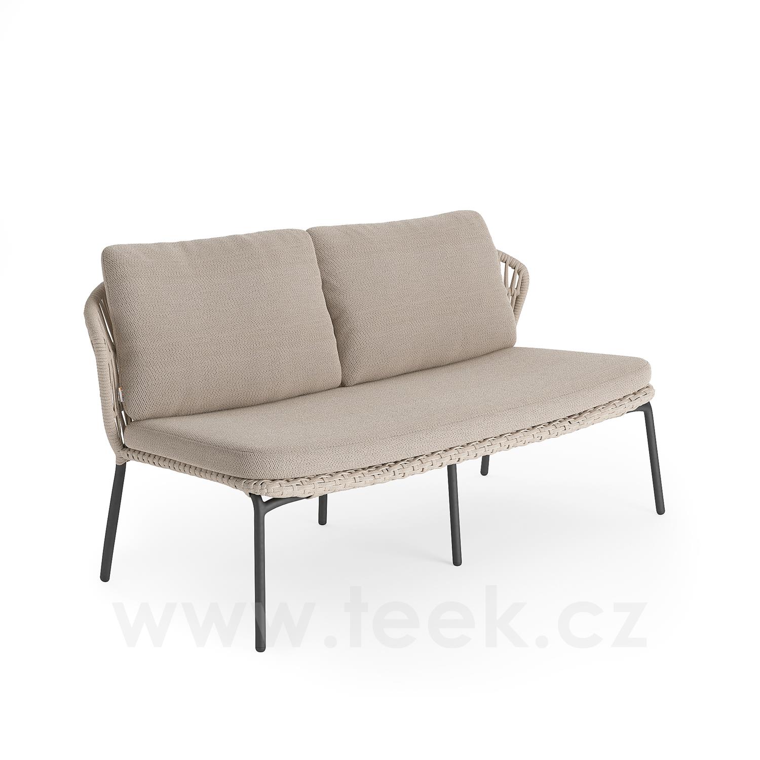 2-miestna pohovka Lima, Jati Kebon, 164x81x81 cm, hliníkový rám, pieskovo matná farba, 14 mm lano, ľanová farba, bez vankúšov