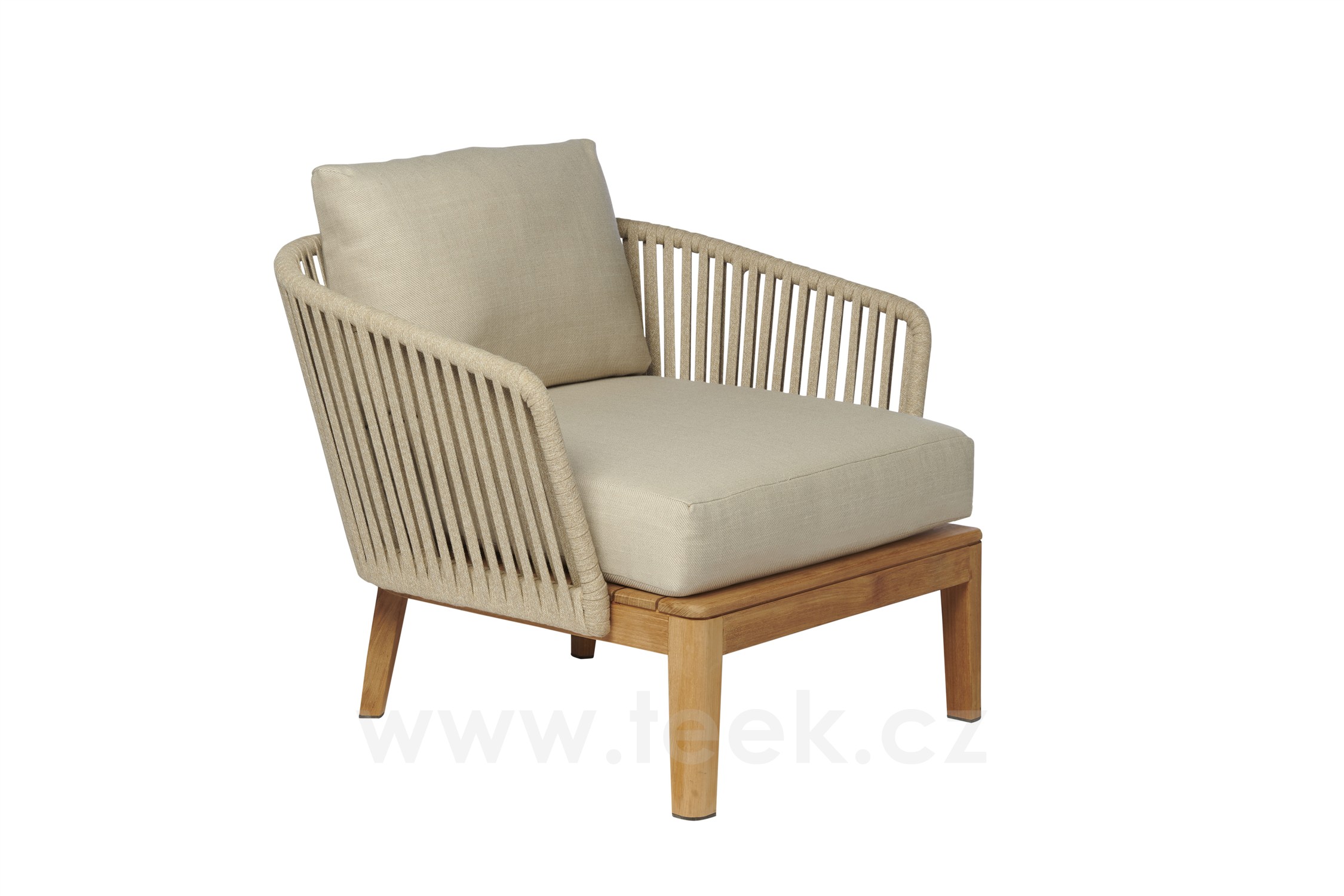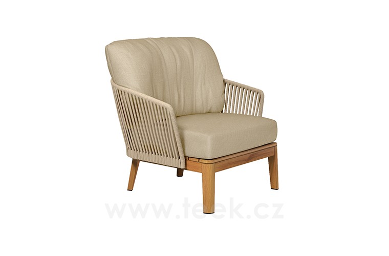 Teakové nízke kreslo Mood, Tribu, rám teak, výplet lanko farba linen, bez sedakov